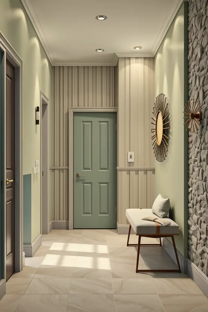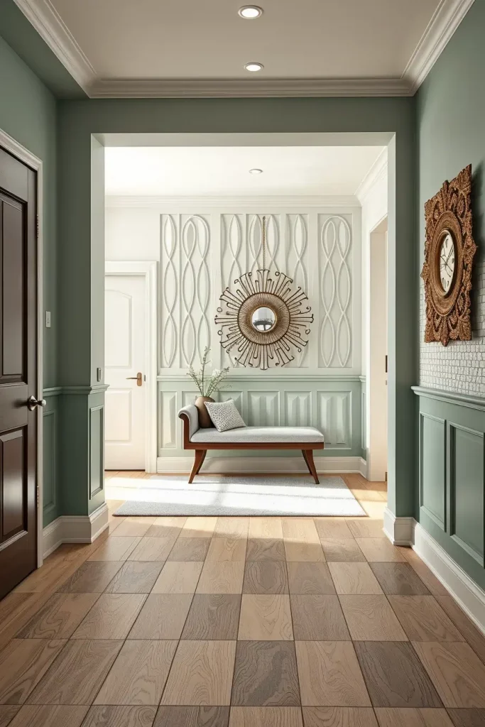 I put up fluted panels in the entryway and gave them a muted sage green color. It made the room seem more active and gave the wall a lively feel. According to Livingetc, adding sculpted details to the walls is a top design idea for small spaces this year.