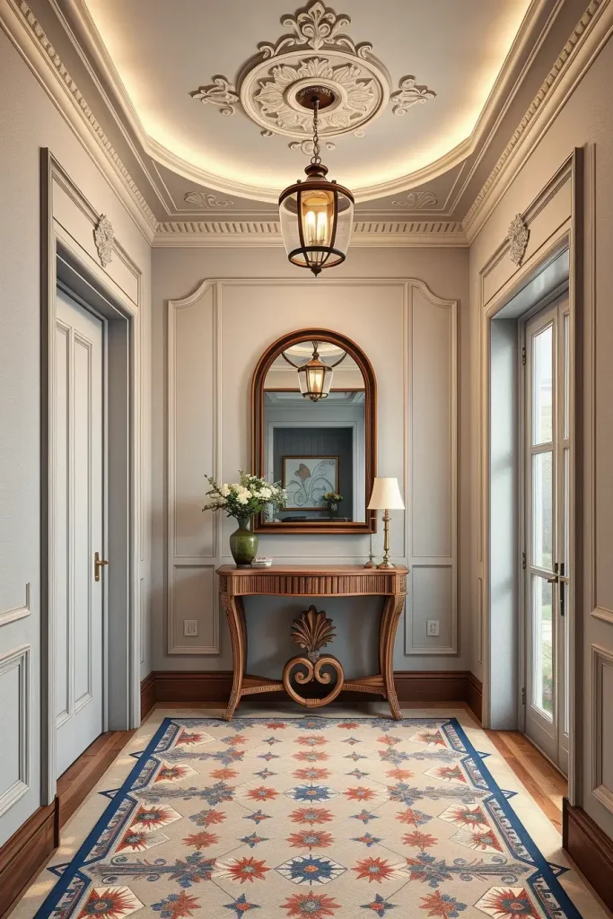 Even in a small foyer, adding architectural designs to your decor can make it seem more impressive. In my experience, arched mirrors, stepped cornices or panel molding can structure and improve the look of any space without making it larger.
