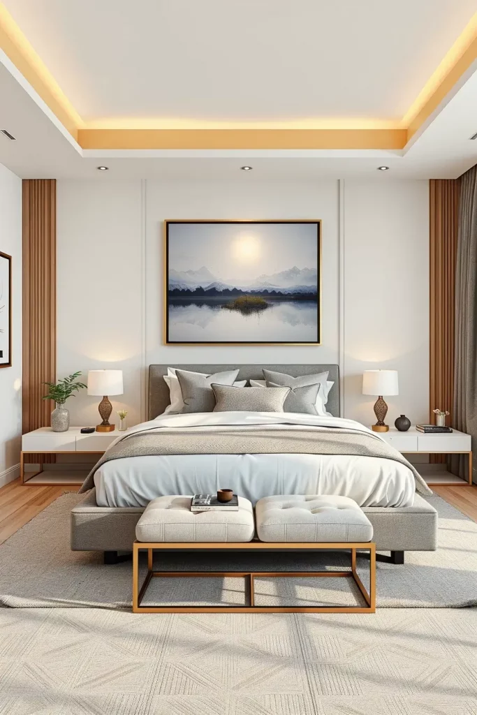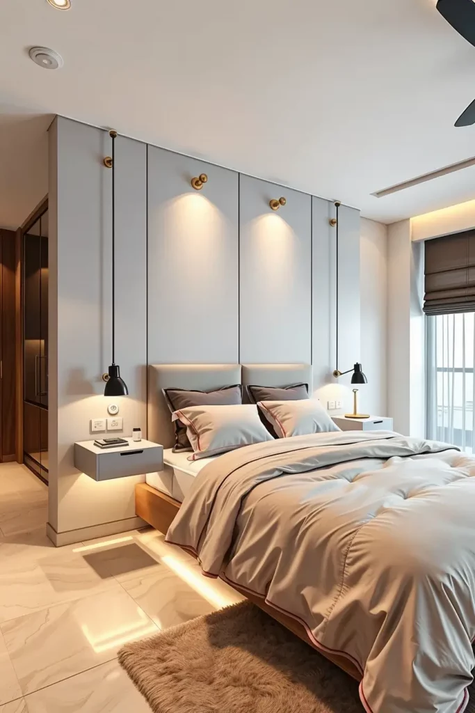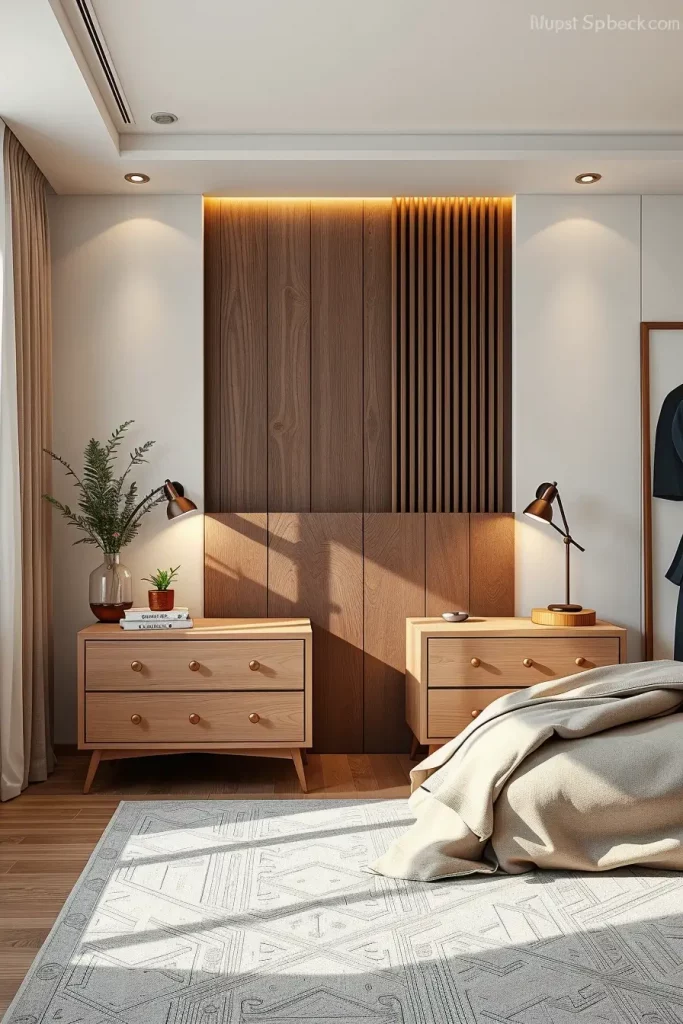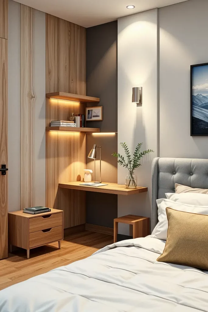 One of the characteristics of the bedrooms in 2026 is the Floating bedside table. I apply floating designs to visually enlarge space and make beautiful architectural appearance which corresponds with the current interior trends.