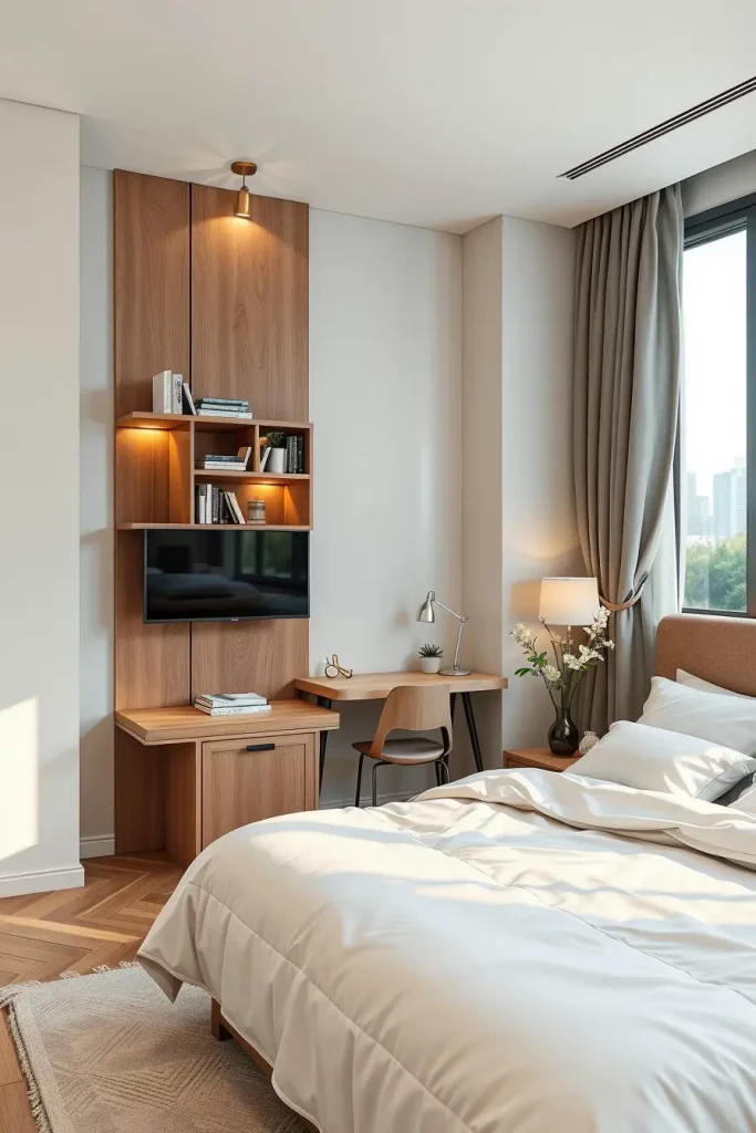 I believe that desk-drawer units will be critical in small bedroom design in 2026 since it will be a single unit that will incorporate work, storage, and balance. In recent bedrooms, and in particular apartment buildings, a deliberate consideration of space is what makes the design choice, and the Desk with Storage / Desk-Drawer Unit will enable the room to be both a place to sleep and to work, without any visual clutter. I concentrate on straight lines, gentle curves and built in storage space that does not stand out in the bedroom but fuses with the bedroom.