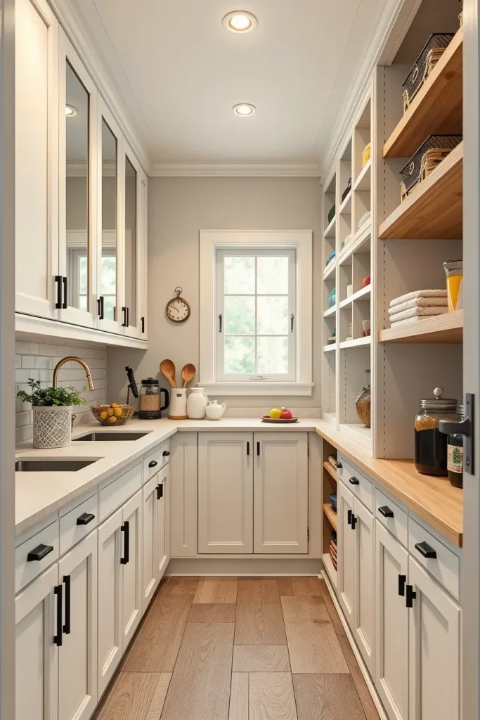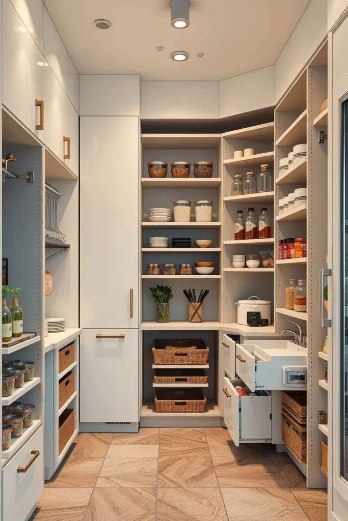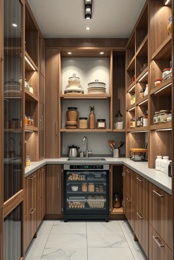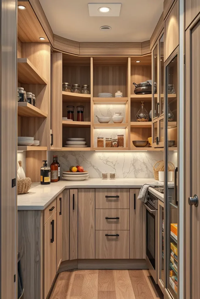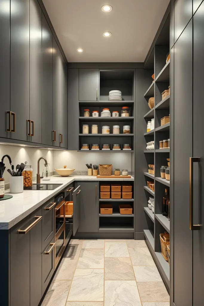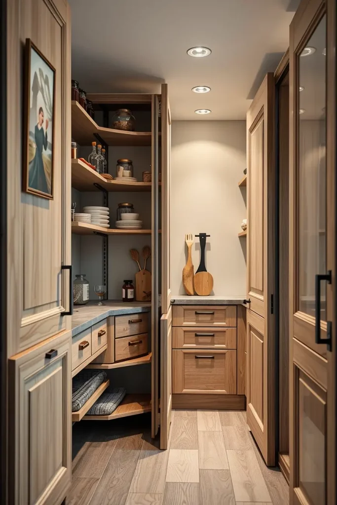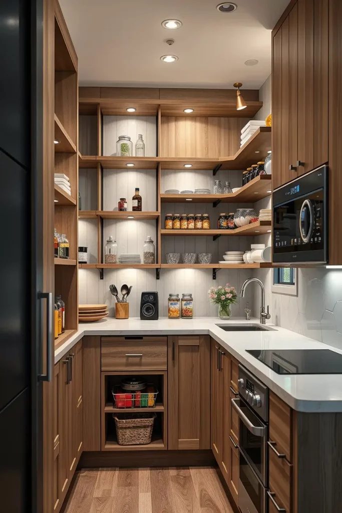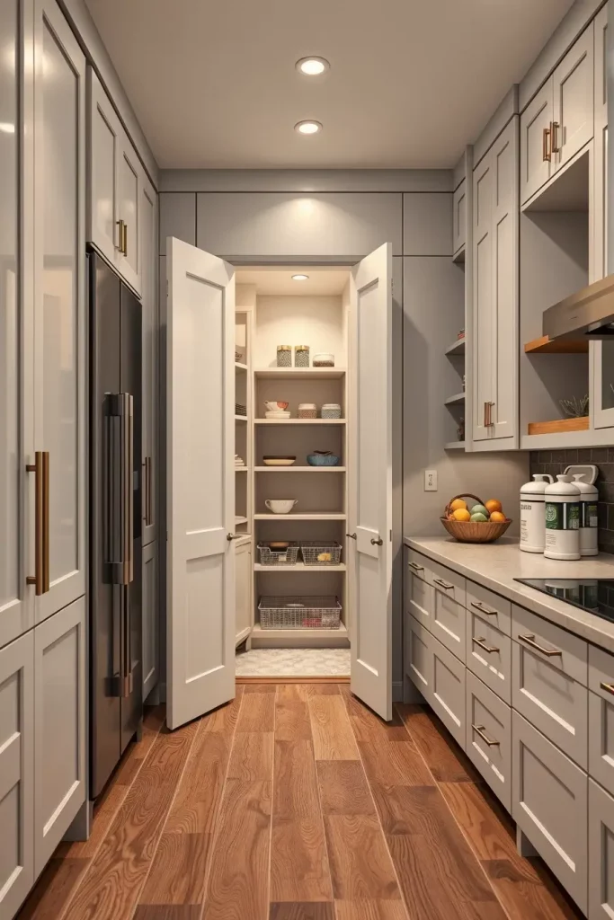 Hidden pantries are becoming popular in 2026 due to the fact that they incorporate storage within the kitchen design resulting in an ideal sleek appearance. I address this aspect when I am designing a small pantry in this style by ensuring that there are continuous lines of the cabinets such that the pantry becomes part of the entire design. This is particularly effective in low key decorations where visual tranquility is a trademark. The hidden pantry opens to show an efficient shelving, drawers and light that are neatly organized.