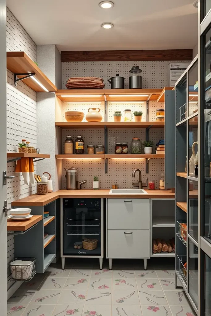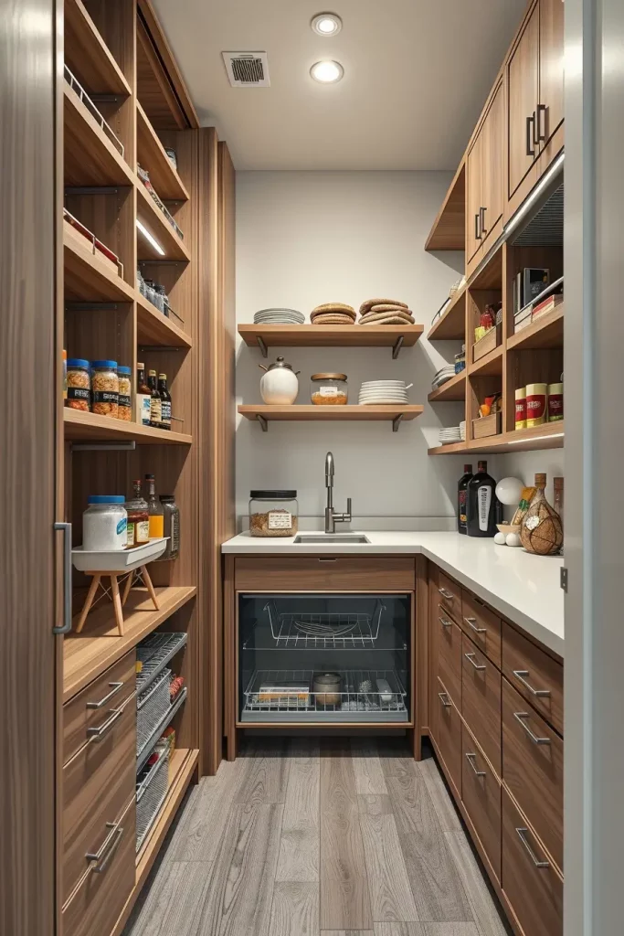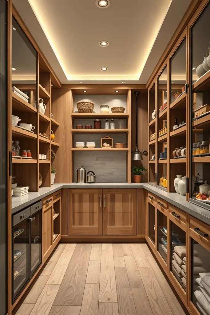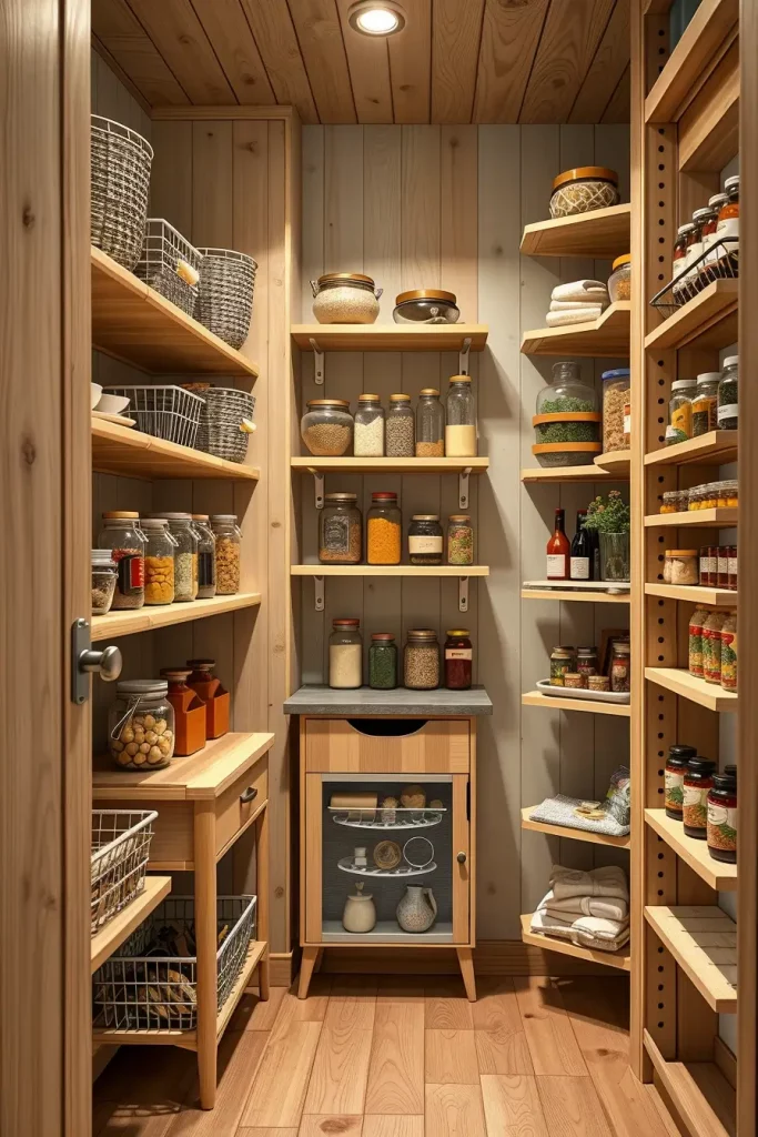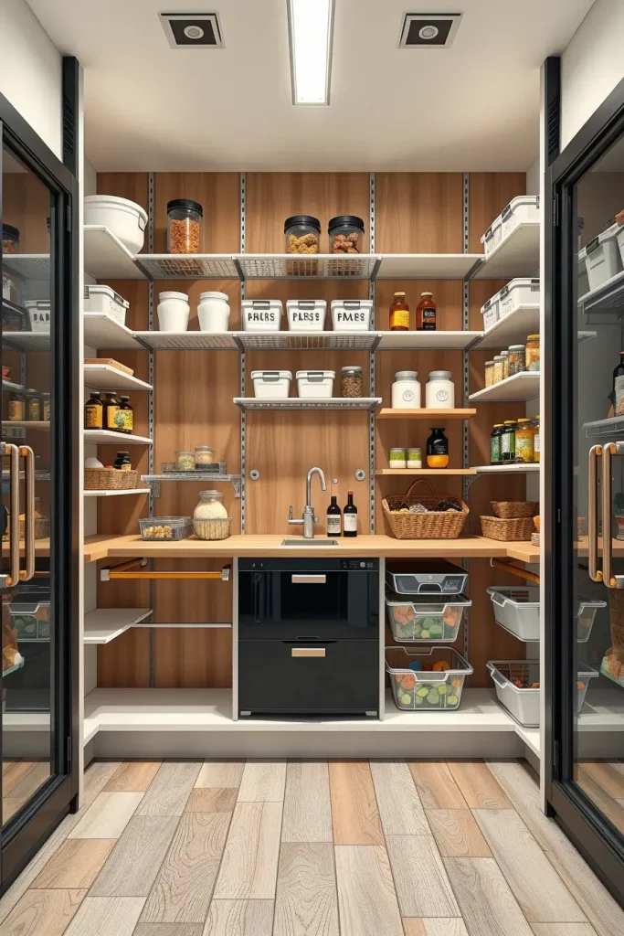 Multi-Functional Pantry Walls With Adjustable Shelves