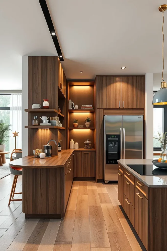 In small kitchens, corner pantries have been gaining popularity to be designed in 2026 since they utilize spaces that were previously ignored. Including a corner pantry to a small design, I pay much attention to angled shelving, rotating furniture, and designs with wraps that would not be invasive and would allow me to maximize space. This solution will convert hard-to-reach spaces into extremely useful storage spaces that will perfectly blend with the overall movement of the kitchen.