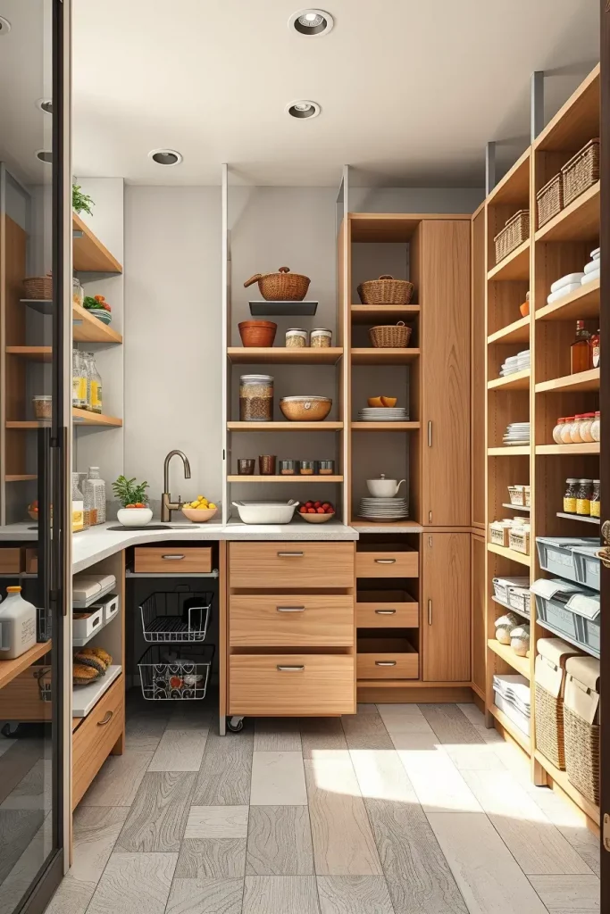 I will also have interchangeable shelving blocks, stackable drawers, removable dividers and expansion panels which can be rearranged when required. These aspects make sure that the pantry can be used by a regular cook, by an increasing family, or by the one who likes shopping in large amounts. The modular units become effective due to the customization factor.