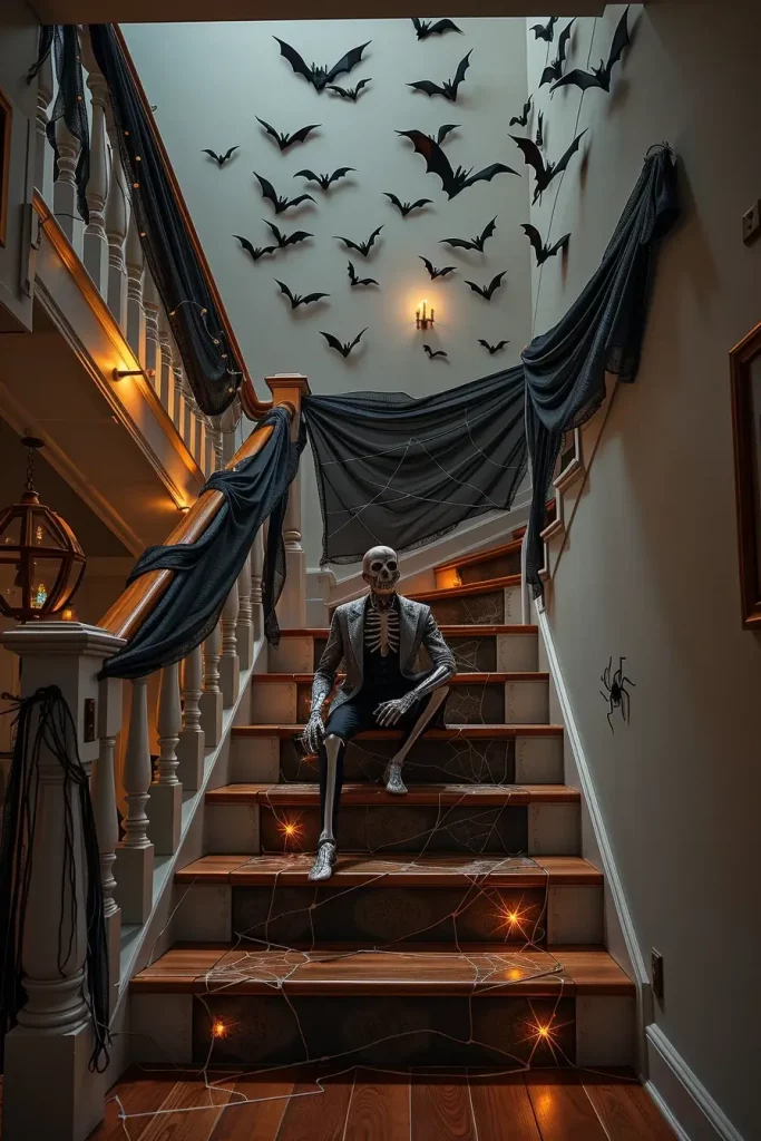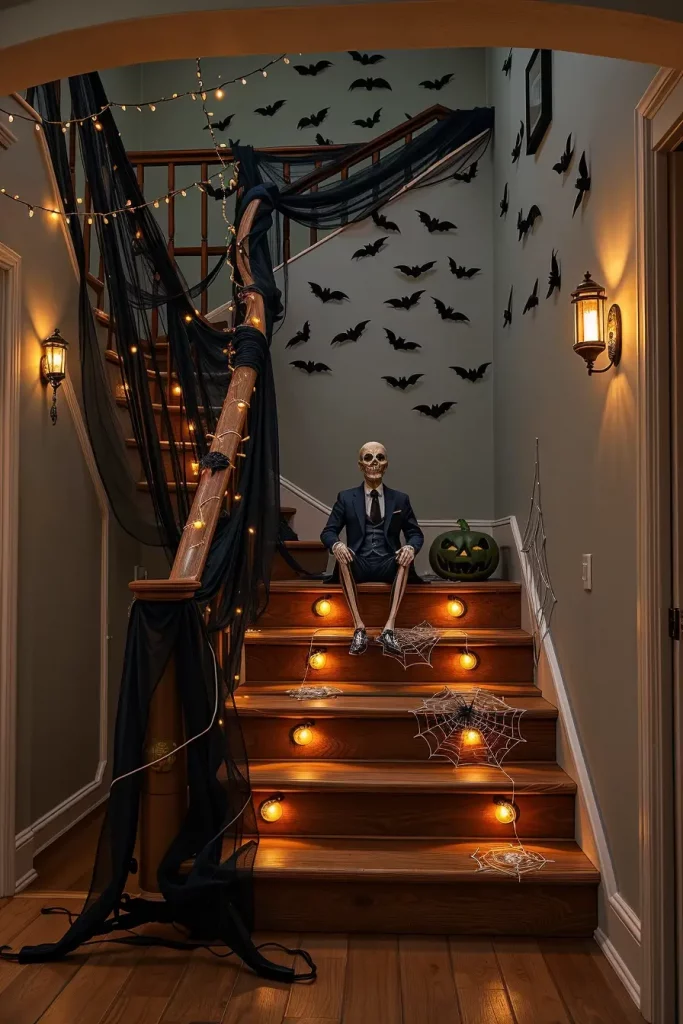 Spooky Staircase Styling: Bats, Webs & LED Step Lighting