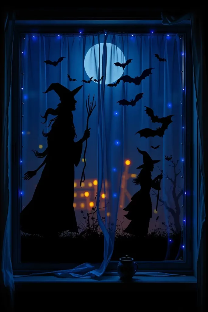 I start with blackout or sheer white panels depending on the vibe I want (void vs. spectral glow). Then I mount removable vinyl decals or cardstock cutouts, add a back row of smart bulbs (set to dim cool white or eerie blue), and experiment with small projectors to cast moving shadows—hands scraping, bats fluttering, branches swaying. I adore magnetic curtain rods and Command hooks so I can install them anywhere.