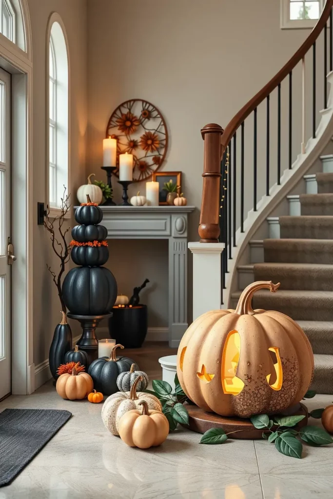 Pumpkins are a design medium in 2025: matte spray-painted, laser-etched, CNC-carved, resin-cast, or even 3D-printed. I apply them to repeat the palette or texture narrative of a room: painted pumpkins with the terrazzo-speckle, faux-concrete finishes, pearlescent whites, or neon gradients to the color-forward home. They are sculptural, stackable and reusable when you go faux.