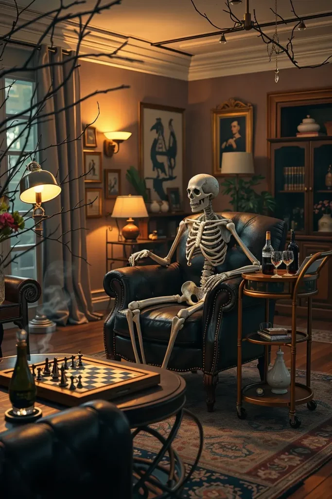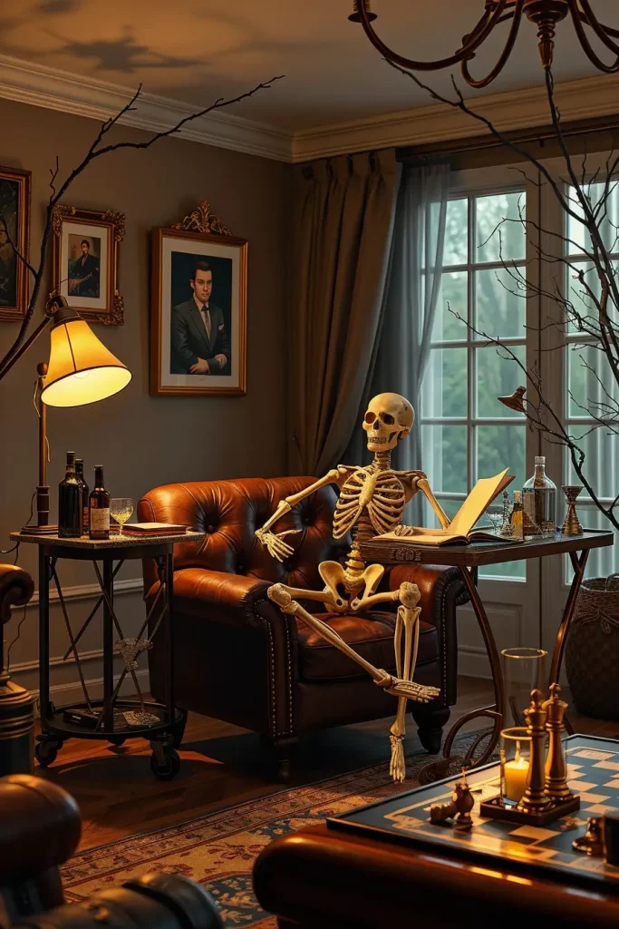 From practice, I secure joints with clear fishing line or wire for safety and symmetry (nothing kills the scene like a slumped skeleton halfway through the party). Many stylists recommend lighting props (like a mini lamp on a console) to make skeletons feel “alive” in the space—this works every time.