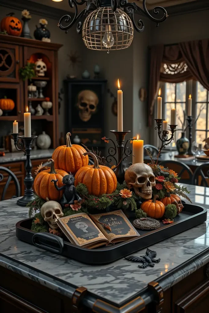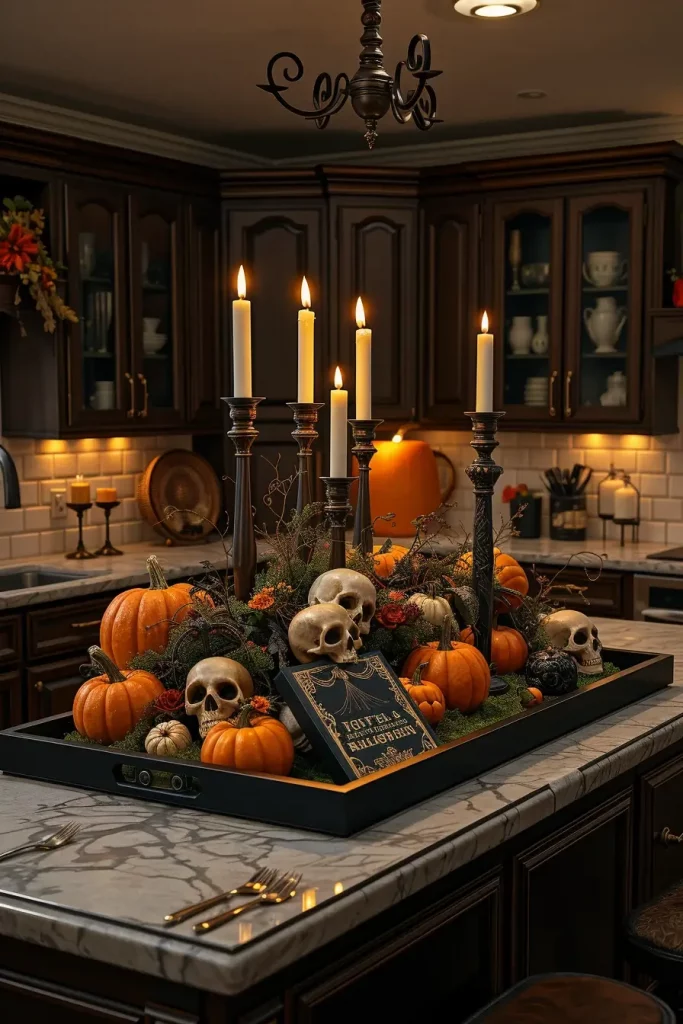 The centerpiece of your room is your kitchen island, and a Halloween creative centerpiece can make a huge difference. In 2025, centerpieces made of layers and natural materials and creepy details are on the front burner. Think of mountains of pumpkins with skulls or gothic candles with fake moss.