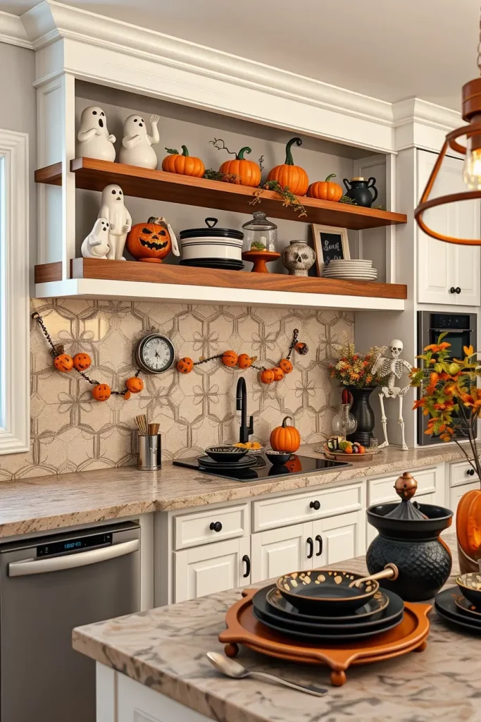 In case you have open shelving in your kitchen, you need to style it using Halloween figurines in 2025. These mini statues will provide texture and narrative, depending on whether you want a creepy or adorable feel. It is also simple to change the shelf decoration when Halloween is coming or going.