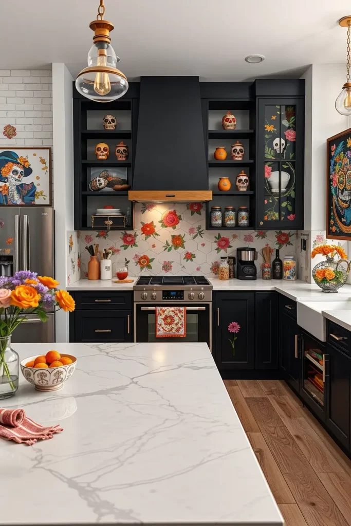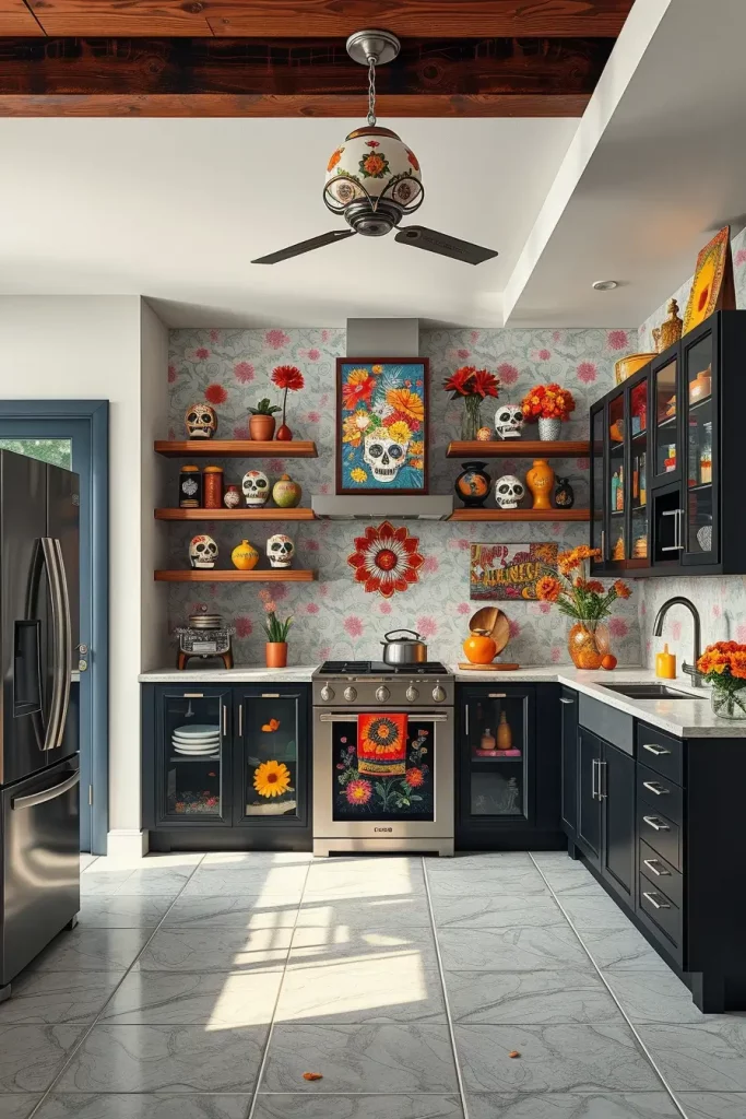 Day Of The Dead Kitchen Decor With Bright Patterns