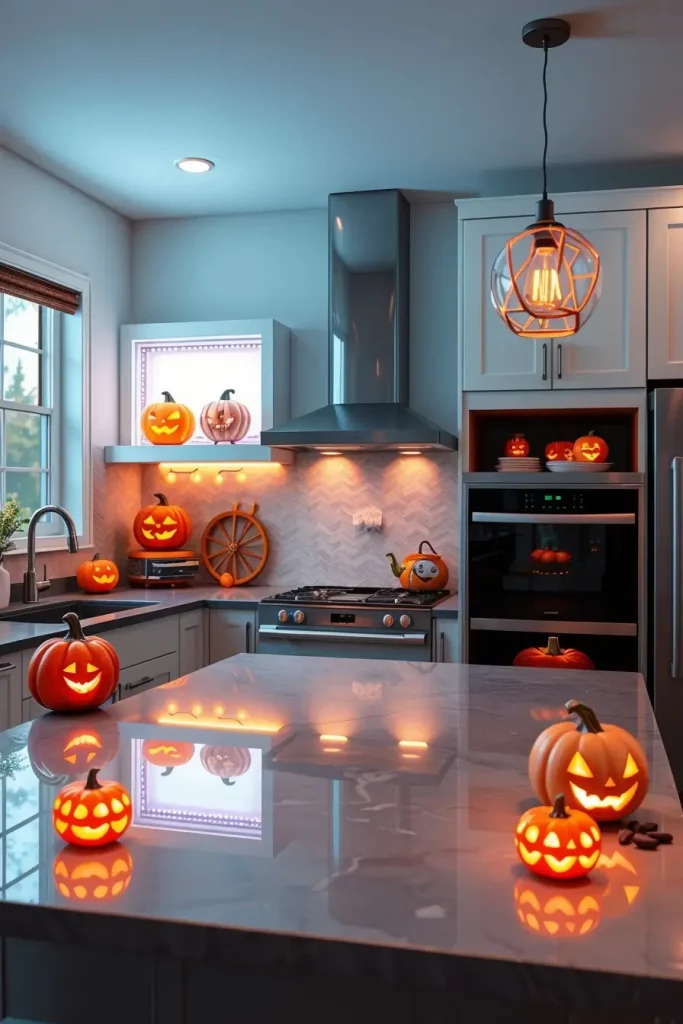 The lighting in the modern kitchen can either ruin or create the mood, most especially on Halloween. By 2025, LED pumpkins and smart lighting effects are the first thing that any person interested in a sleek but spooky atmosphere would choose. If you’re a fan of minimalism or contemporary kitchen decor, this one’s for you.