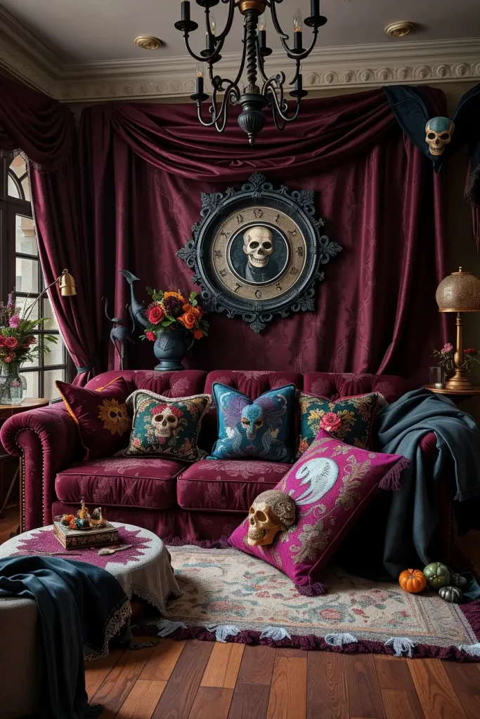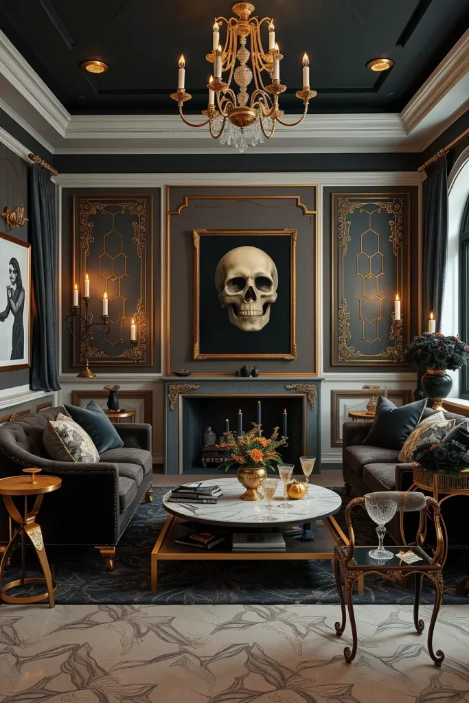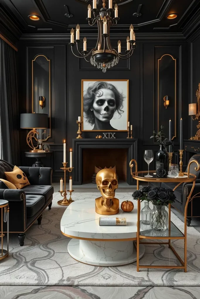 Modern Gothic Glam Halloween Living Room Decor