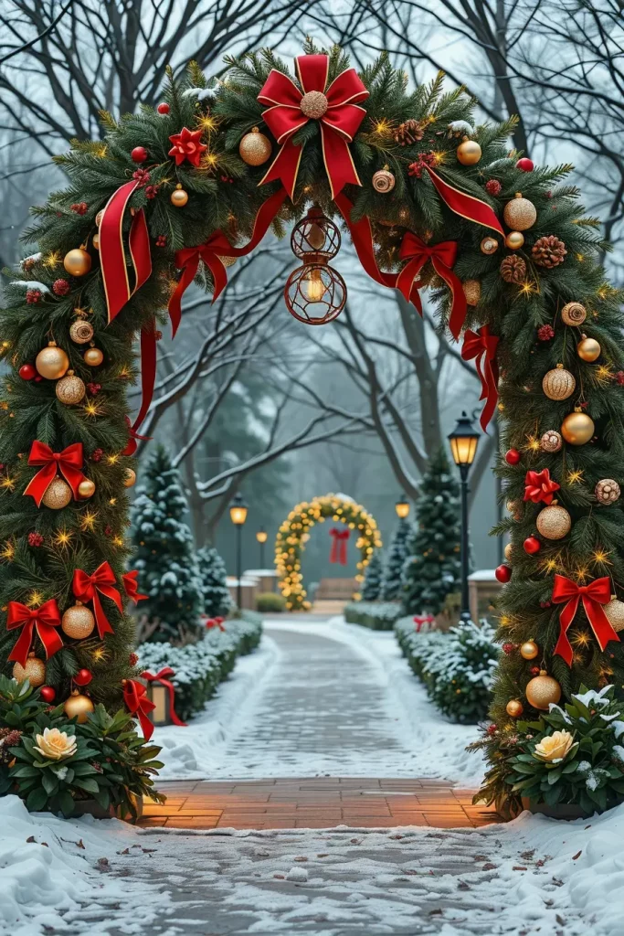 I discovered that pre-lit artificial greenery is arched with red bows ornaments, and pinecones and are very practical and beautiful. They do not need extensive installation and they can give a season after season. In case you are a DIY person, it is just as effective to wrap PVC piping with garlands and string lights.