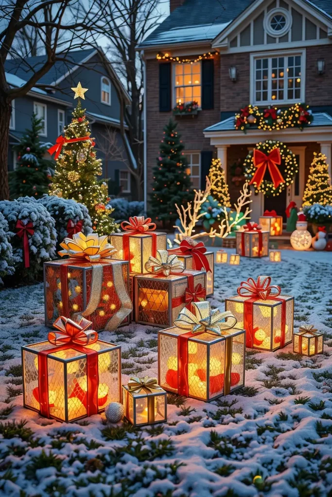Glowing Gift Boxes To an Adorable Outdoor Display