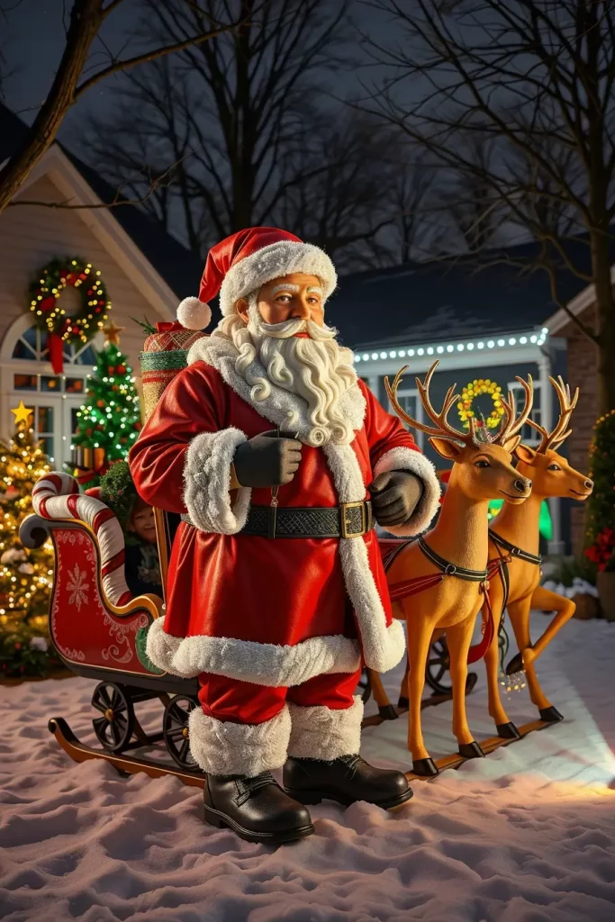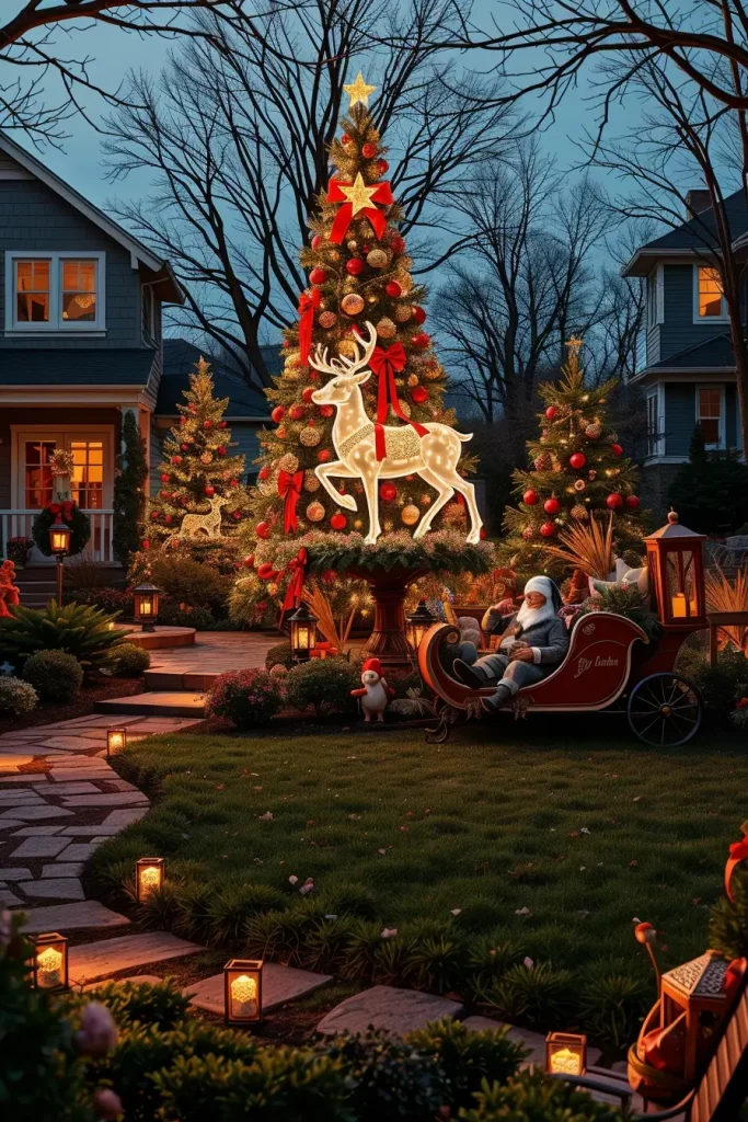 Reindeer and sleigh displays are not the most iconic out of the outdoor Christmas ornaments. I would say that these immediately produce a nostalgic and wondrous feeling and make us think of childhood narratives. Newer models are equipped with LED outlines, glitter details and some subtle motion effects to make the display more dynamic in 2025.