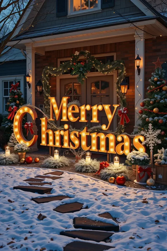 Individual Christmas signage can be easily used to personalize the outdoor decor. I will like to include wooden signs, metal cut outs or light board with funny Christmas messages or even family names. They serve as a form of decoration and a greeting to the visitors.