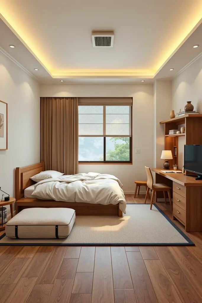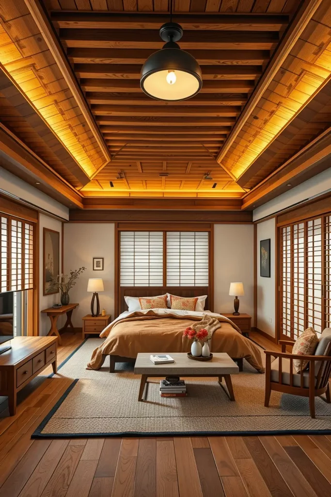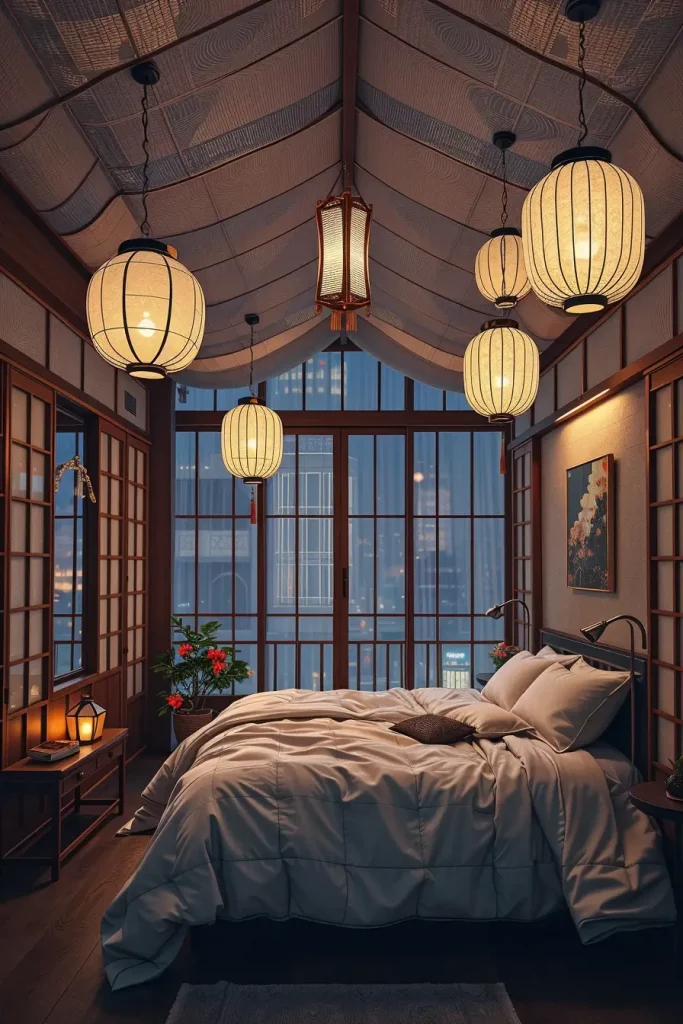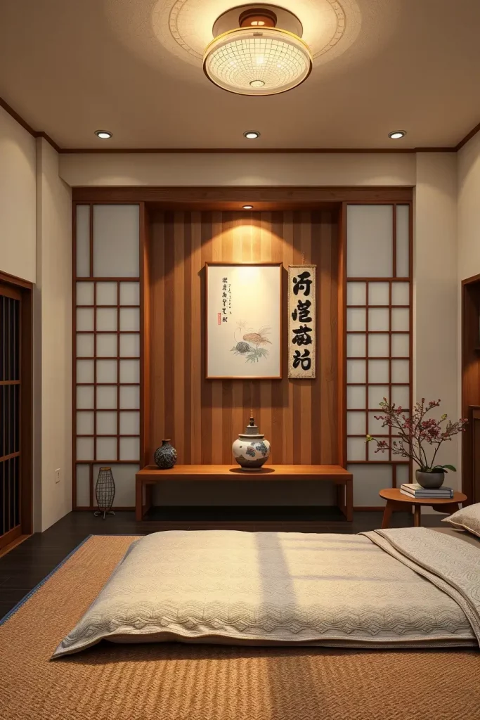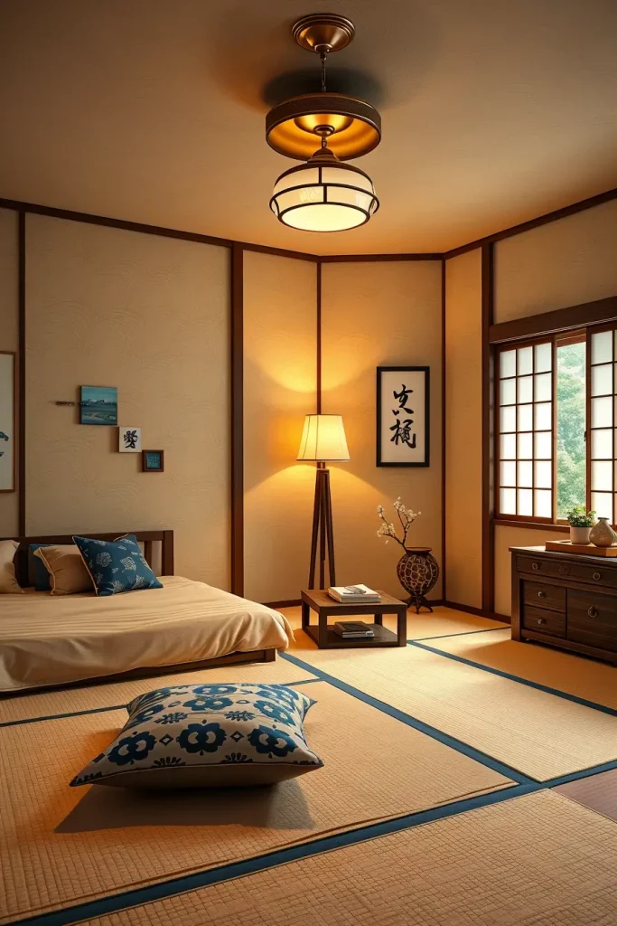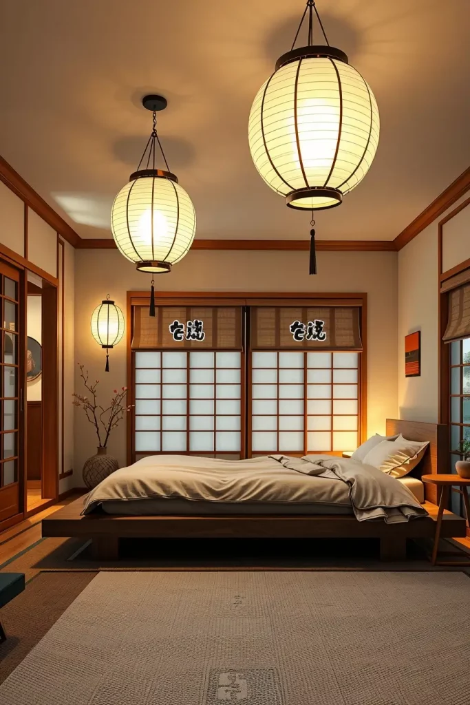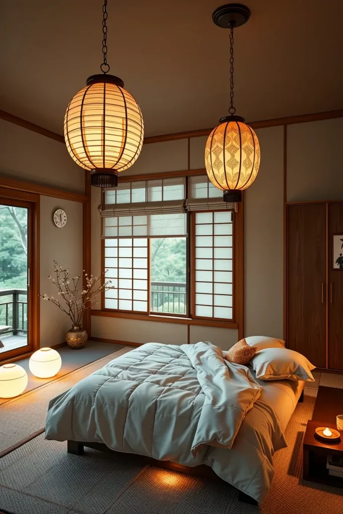 Lighting is important when it is time to work out the design of the Japanese bedroom as peaceful but magical. The ability to use moon-inspired fixtures to attain the ethereal glow of the contemplative nights in Kyoto is something that I love doing. The soft but not tough light is produced with a moon-shaped pendant or a wall-set LED disc that serves as a good resting place. Such dreamy light fits a very well Asian style interior to enforce the rhythm of nature.