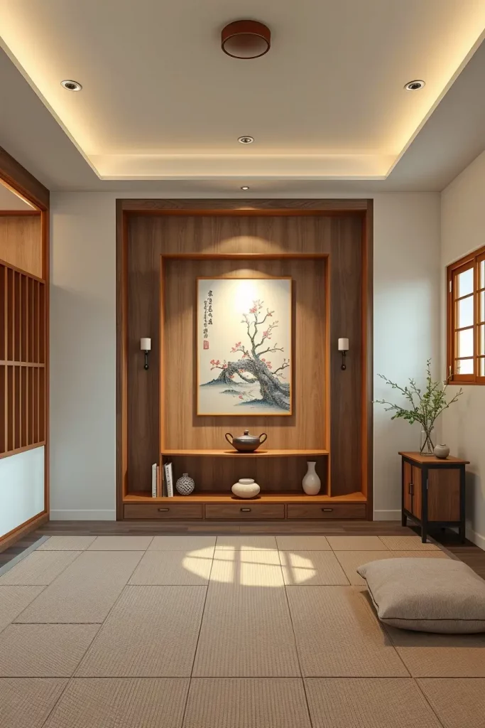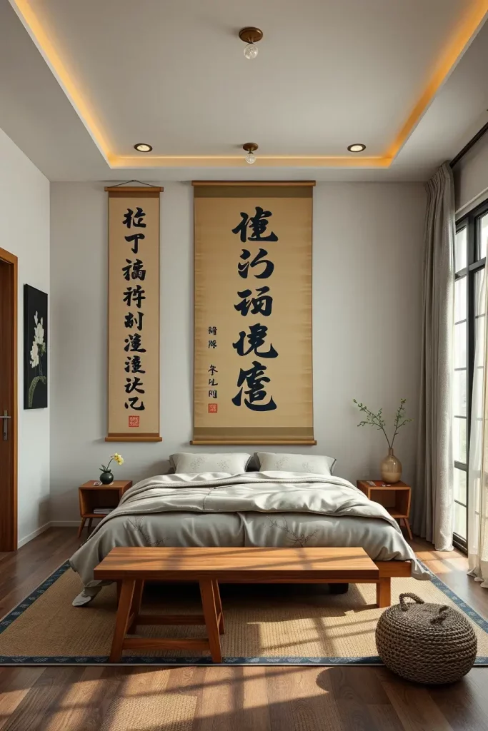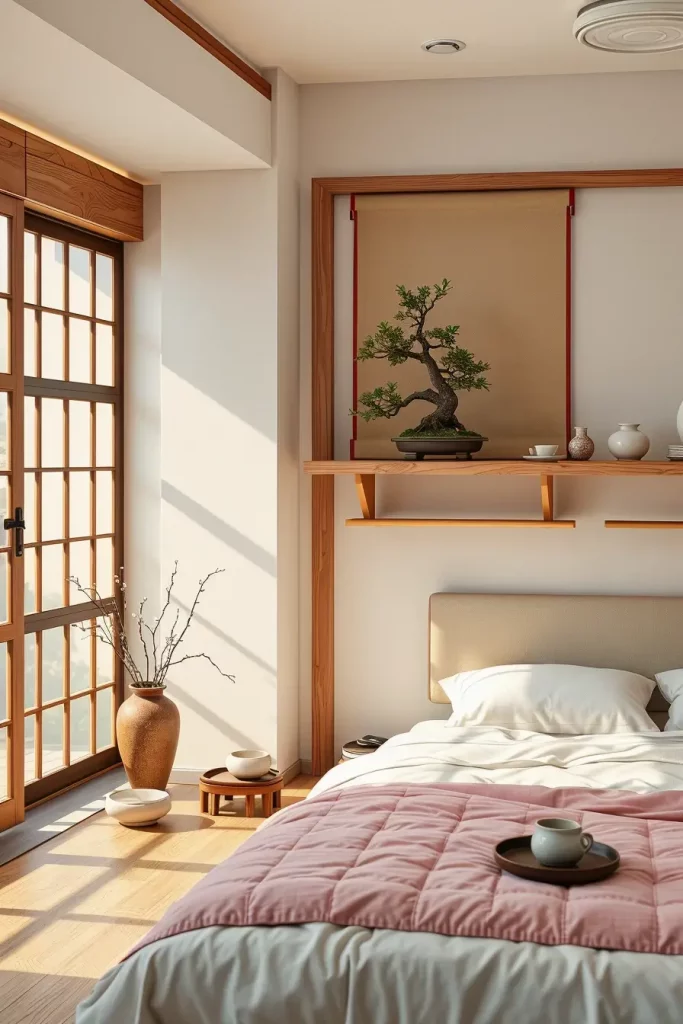 What makes Japanese bedrooms decor is not that they accumulate but that they curate. That’s why I love using Zen-style wall niches (tokonoma) to display meaningful ornaments. These niches, most often sac. into the wall itself, are micro-galleries where items of the season may be put up–seasonal decorations, ikebana flower arrangements, or ink brush paintings.