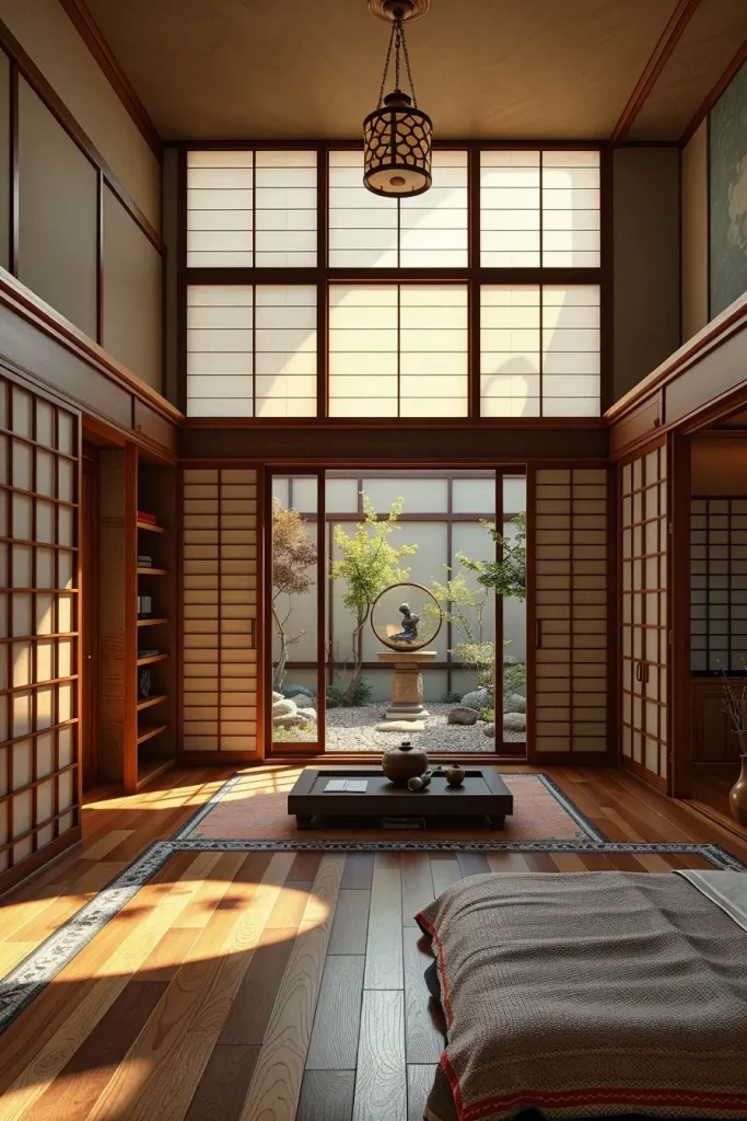 Shoji screen a light thin panel being translucent and at the same time determines space but letting soft luminescence pass through, is often the starting point of Japanese design. Here in my bedroom escape, I apply shoji panels as the divider of walls as well as sliding doors in a layered style that is ageless. All of these panels do more than just remind of the Zen spirit; they are all exceptionally practical about separating the space, yet leaving it open, which is an ideal solution to small apartments or rooms that require more versatility.