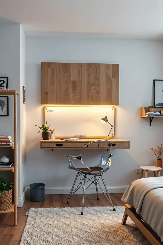The floating desk trend has taken off (literally) in 2025. These are minimalist wall-mounted desks that dorm inhabitants who are in need of some legroom and a more open design will love. They fold up, down or out, are installed at seated or standing height and many have built-in lighting or cable management. It is beautiful the way they apparently float to provide your room a futuristic feel without taking away the floor space.