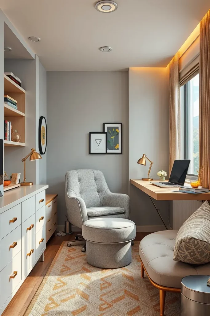 To further extend this area, I would include a modular seating cube which can serve as a stepstool, side table and additional storage. A single furniture that serves three functions? It is 2025 efficiency at its best.