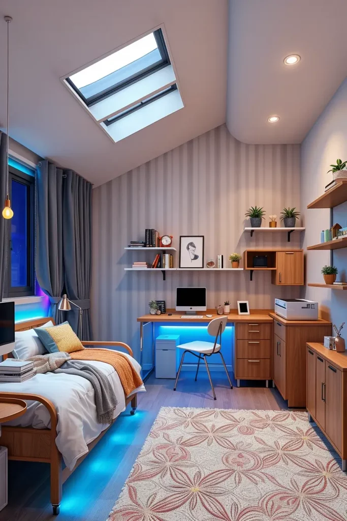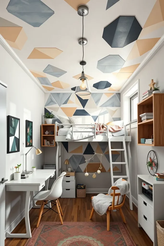 The ceiling that used to be neglected previously becomes an expression surface in the dorm room design of 2025. I have observed a huge growth in textured floor and wall tiles, peel and stick wall murals, and even painted grid patterns that add depth and interest to what would otherwise be pretty plain spaces. Not just making a smaller dorm appear more vertical, statement ceilings are also a special expression of individual style. They work particularly well in lofted arrangements where students have more time looking at the ceiling than the floor.