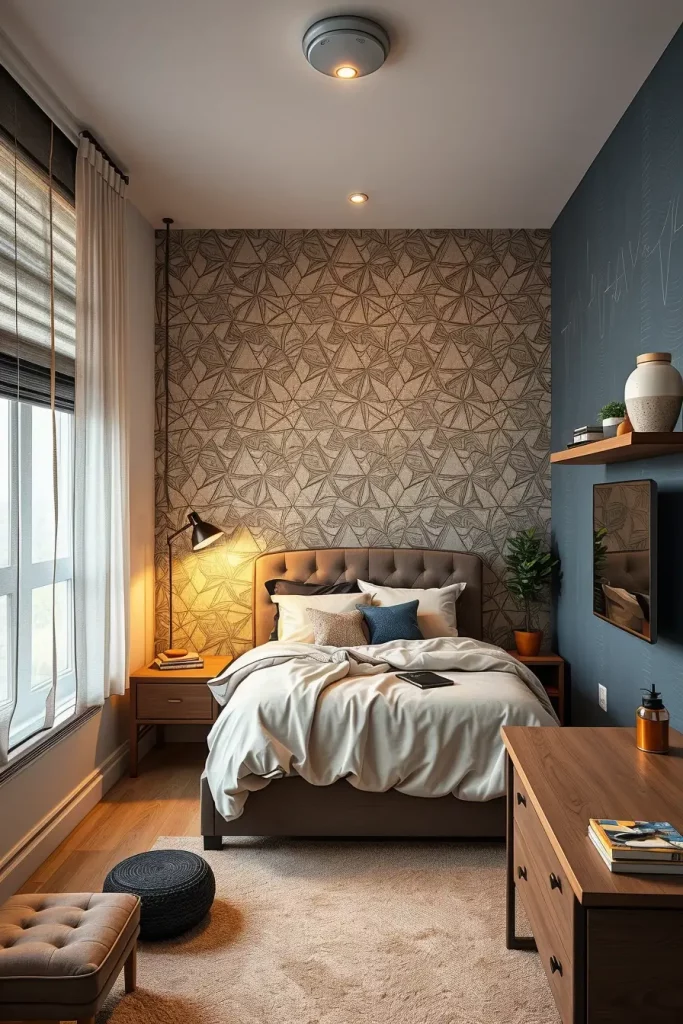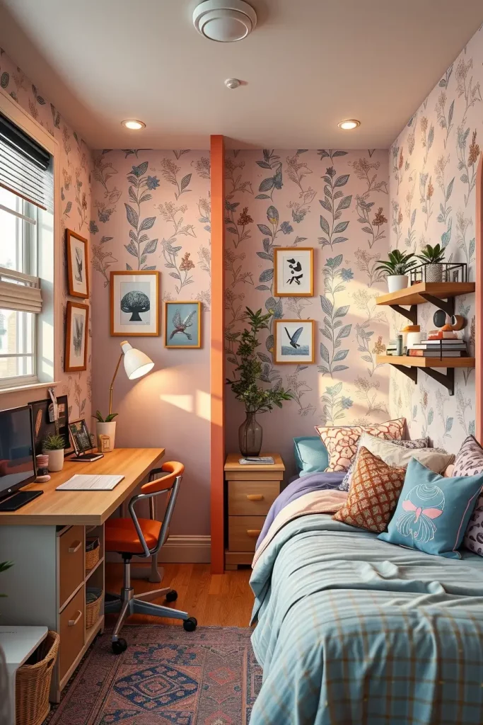 Gone are the flat walls – dimension is the new wave. In 2025, textured wall murals and 3D wallpaper adds drama and specialness to dorm interior. They are not permanent installations, but rather smart peel-and-stick deep surfaces that cause no harm. Imagine foam-sculpted panels, wallpaper-woven looks or even velvet-like decals that look and feel like art installations.