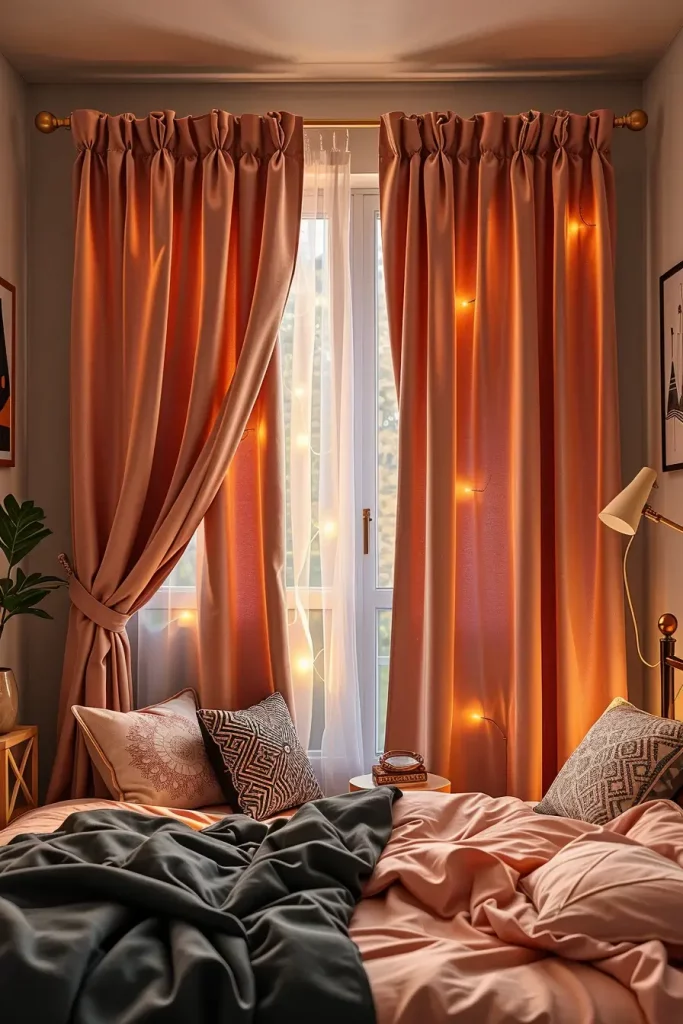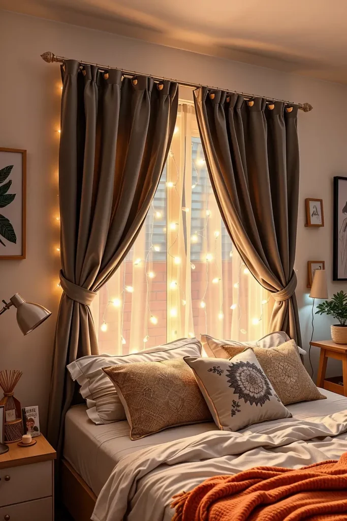 In 2025, window treatments are becoming smarter, and chicer. Having strict dorm regulations regarding damages and drilling, students are embracing the no-drill curtain options that appear upscale but do not leave a trace. Tension rods, adhesive mounts, and magnetic brackets are tension-based systems that allow the easy installation of heavy or luxe-appearing panels. I have spotted all kinds of velvet to linen-look curtains blurring boundaries and making cosy corners.