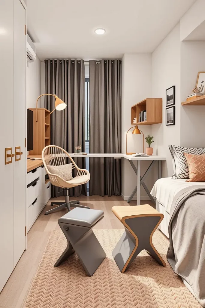 Modular furniture is the actual MVP of tiny home living this year. The key words in a dorm room in 2025 will be multifunctionality – items that slide out, click together, or change entirely are highly requested. I have seen beds that convert to desks, ottomans that have coolers and wardrobe systems that extend up rather than out. The trend does not merely stop at space saving, but rather repurposes the space in inventive and fashionable ways to fit the lifestyle of the contemporary college life.