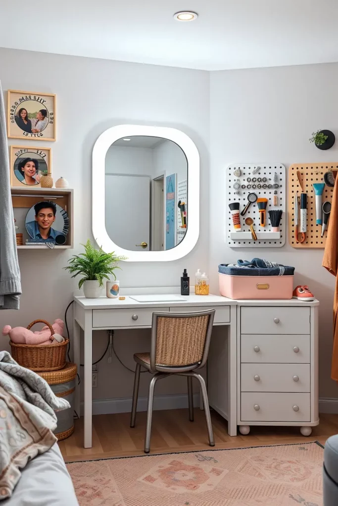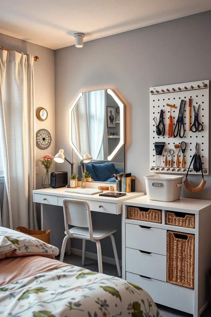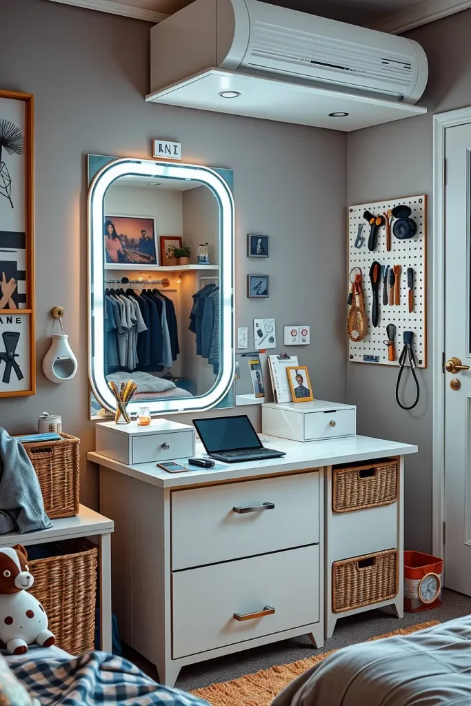 I really love these self-contained beauty and grooming stations as an addition in 2025 dorm design. Small but glamorous, the portable vanity nooks currently come with fold-down countertops, swivel stools, built-in storage and naturally, Hollywood-type lighting. I would position them close to a window or in a bright corner to serve the purpose and the atmosphere best.