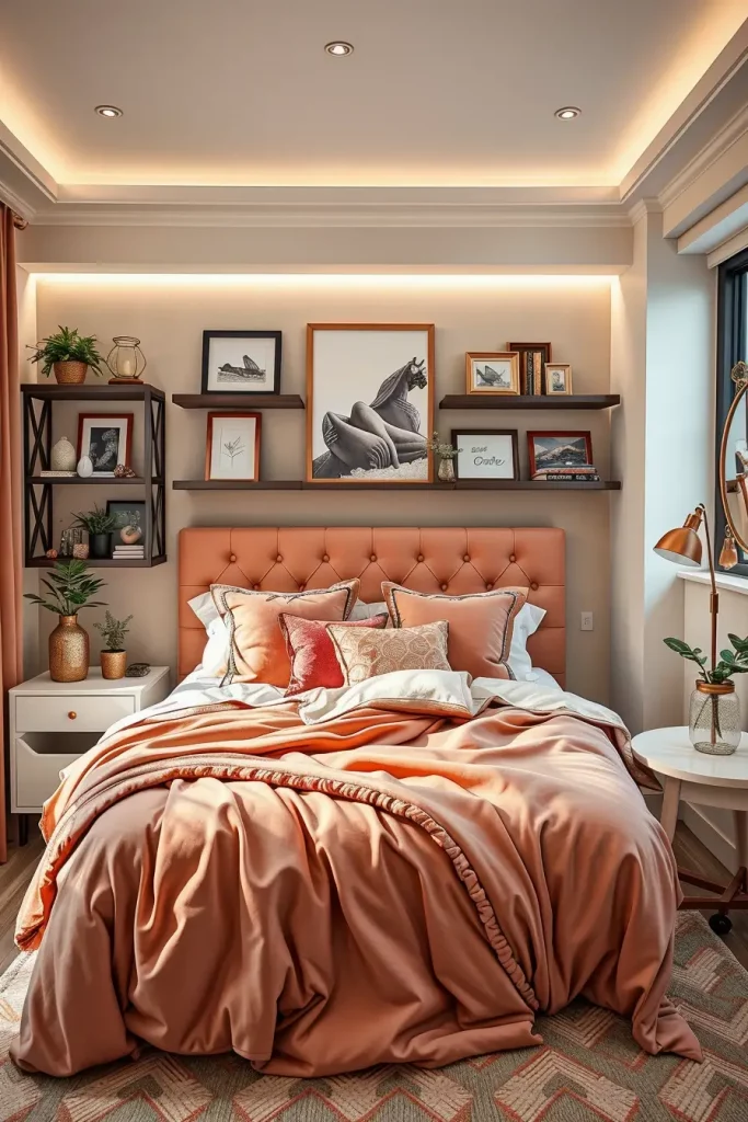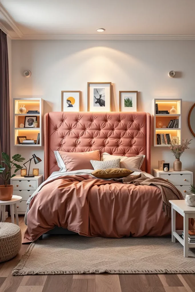 I have created dorms with the headboard that extends to make built-in shelves or serve as a pinboard with daily inspiration. Common finishes are boucle fabric, vegan leather or even stick-on wood planks in a herringbone pattern. The color scheme tends to work with the bedding – blush, forest green or dusty clay are huge in 2025. It is common to use the bed region as a sitting area hence soft pillows and a flexible backrest are a necessity.