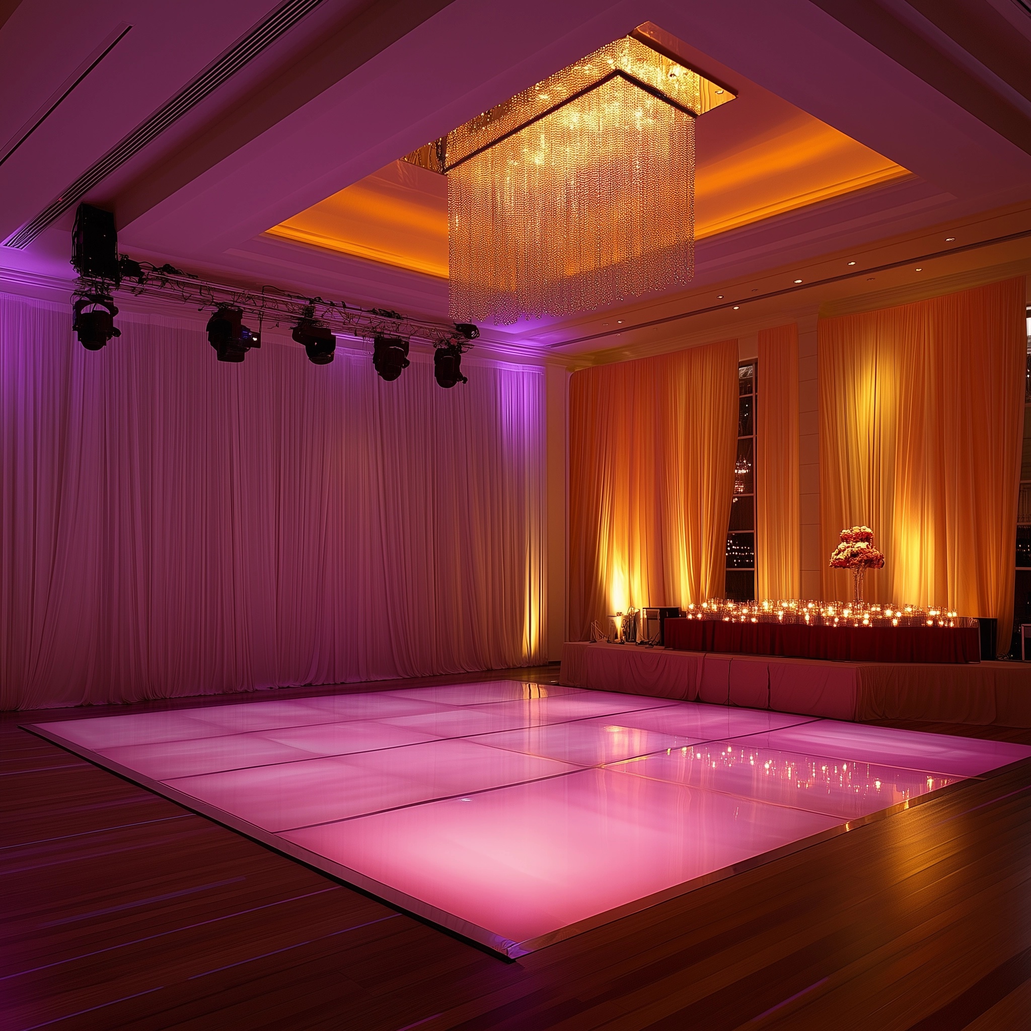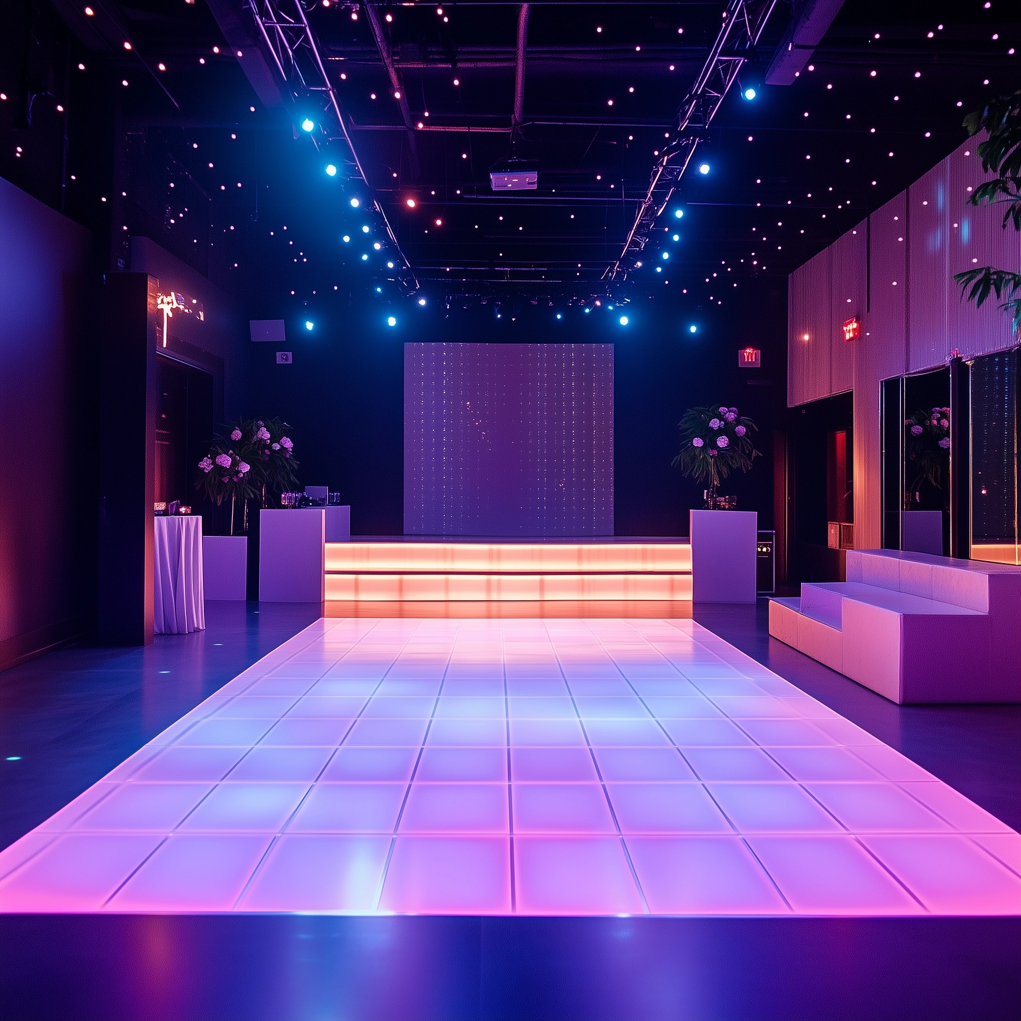 The dance floor aesthetic transcends beyond just the floor material; it is about the entire visual surrounding, from the lighting to the deejays to the rest of the space. Choosing flooring that is in harmony with the event’s color scheme and gives the desired effect of it that is glossy or textured as per the material, is a better option. Casting the right dancing mood is a matter of the light that makes the dance floor the focal point without using too many colors.