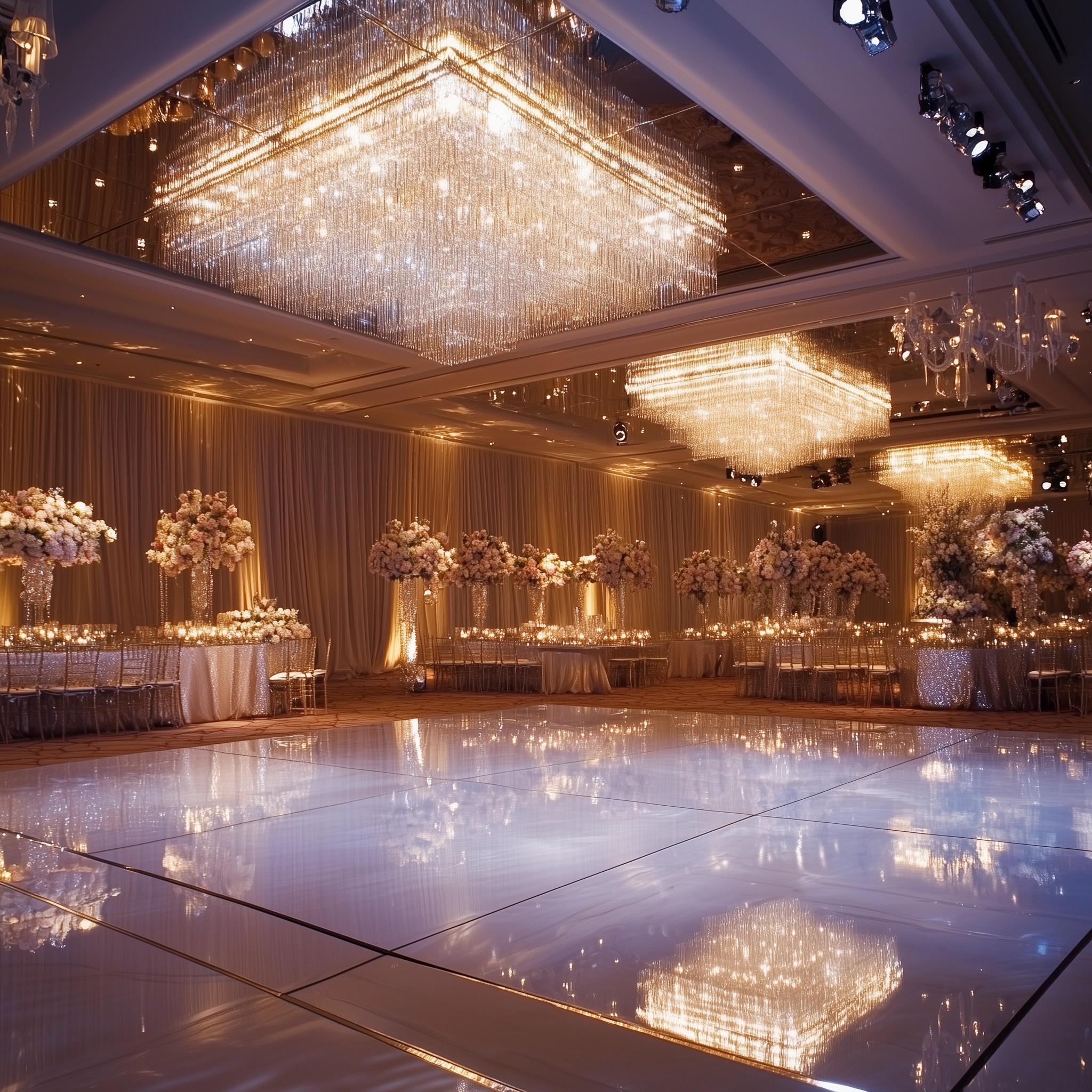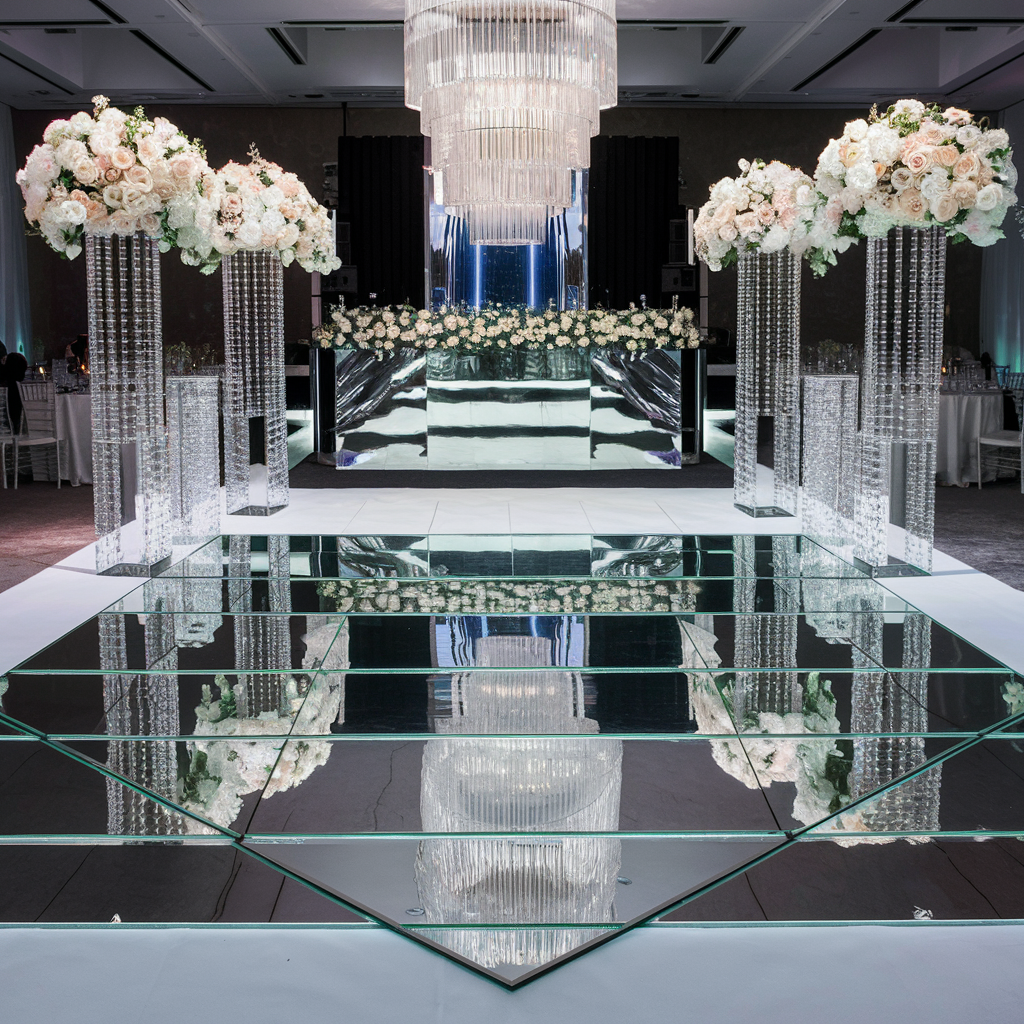 A mirrored dance floor is a kind of floor that is capable of giving a feel of a fine and posh event as it adds a sense of true luxury and a sophisticated look to the entertainment. On one hand, the silvered surface transmits some illumination, which is a significant benefit, and on the other hand, it produces a feeling of space and luxury. However, crystal chandeliers and flower arrangements are the things that can be used for the ceiling and walls to sharpen the visual depth the dance floor sets.