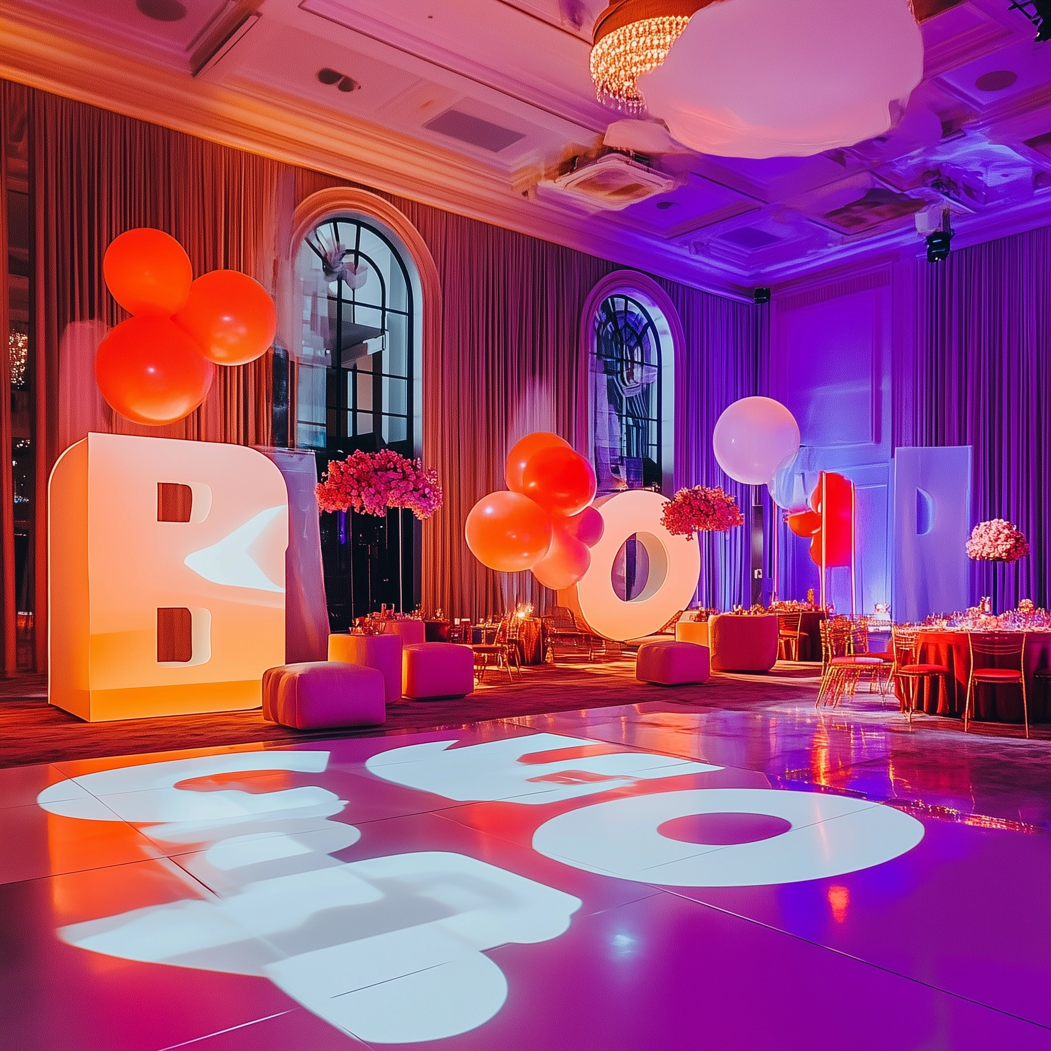 The property on the dance floor is an ideal tool for innovation in events and fun. Going bigger with objects like huge letters that only take a whole wall, arc like balloon or photo of different celebrities to be used as cutouts. You may decide for instance personalizing the items with your own logos or event’s sake. In addition to these, almost all props are perfect photo opportunities enabling you to engage with your attendees.
