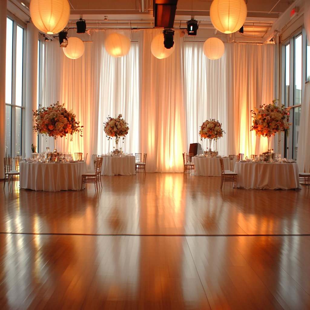 When planning a wedding reception, the dance floor becomes a focal point where guests gather to celebrate. A well-decorated dance floor can elevate the entire event, adding elegance and charm. Consider using elegant floral arrangements for the dance floor perimeter. A combination of soft draping elements and overhead decorations in a wedding event can sure create a romantic atmosphere. Soft lights such as chandeliers or string lights might introduce coziness and bring the area to life.