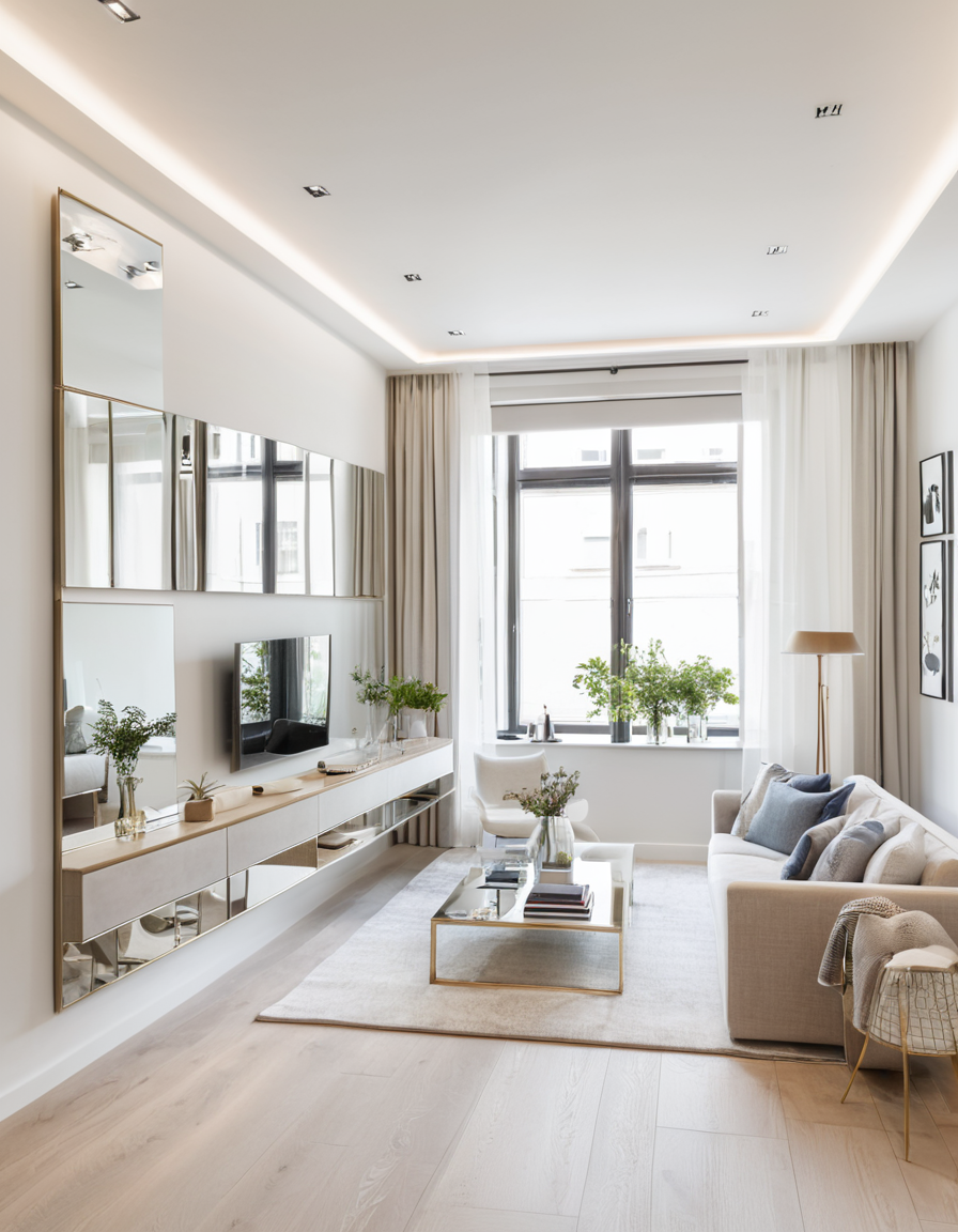 Among the essentials every small apartment should have, there is the mirror that multitasks by reflecting light and enlarging the space you are in. Installing mirrors strategically to walls, behind the furniture, or placing mirrors at windows help to create more visual depth and let the natural light in. To add the trendiness choose the mirrors that have fancy frames or maybe utilize a few mirrors in a manner of creating a gallery wall. This tactic will get you the desired result in very tight bathrooms, kitchens or hallways.