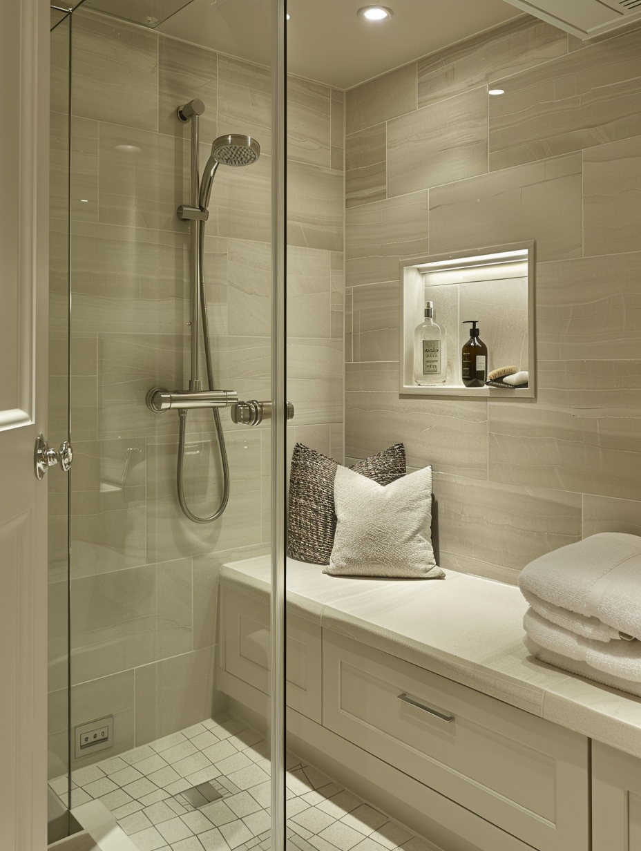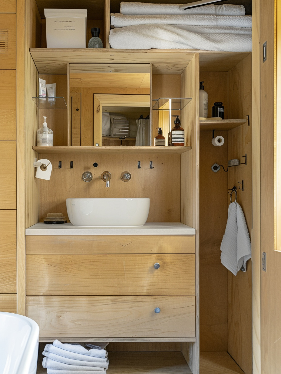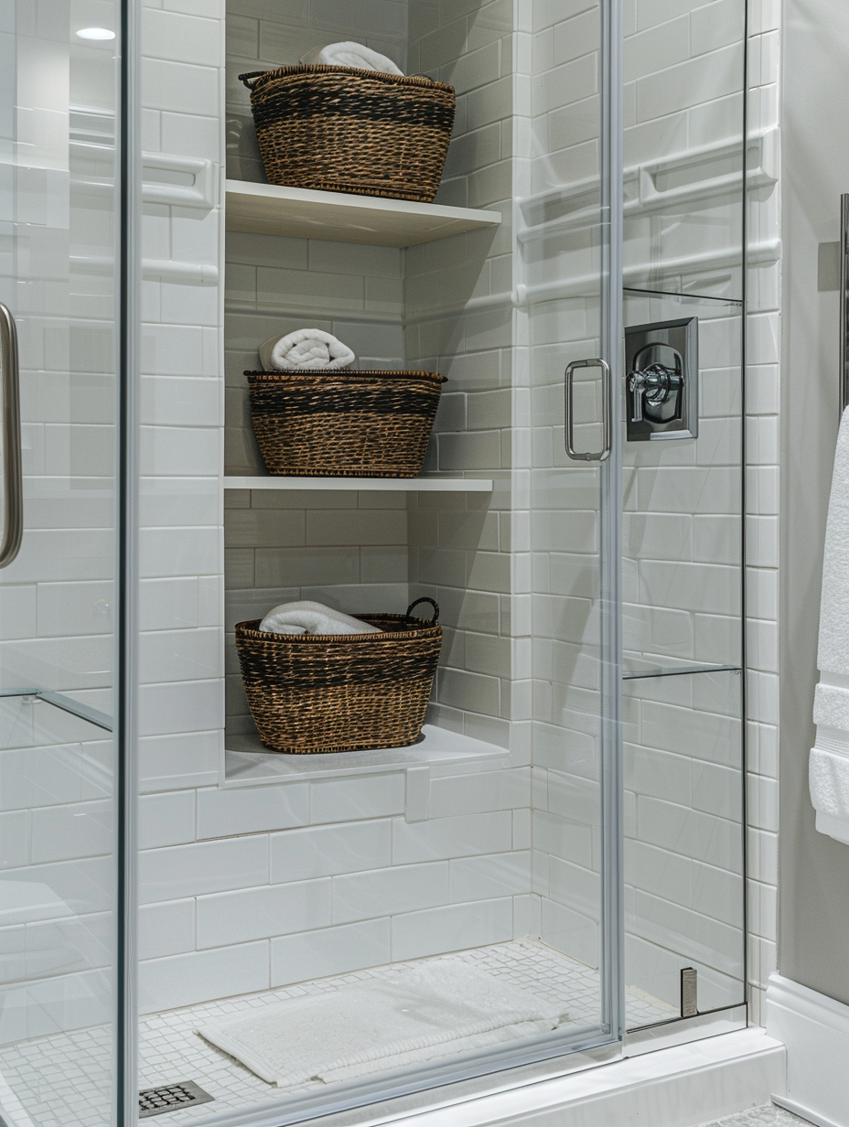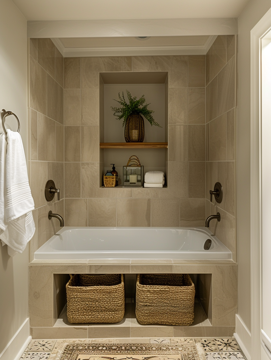Built-in storage nooks can be a lifesaver in small bathroom design. Recessed shelves in the shower, above the bathtub, or within the walls can store toiletries and towels without taking up additional space. These nooks can be styled with tiles or decorative elements to blend seamlessly with the overall decor.