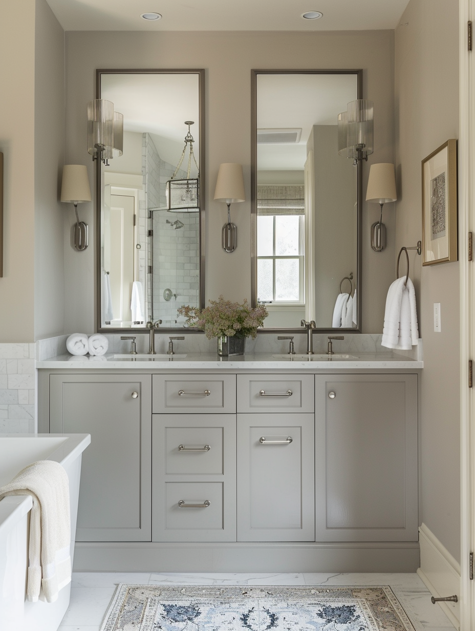 The concept of mirrors is the predicate in bathroom. If you want to bring out the size of your bathroom, use several mirrors larger than the ones I have already bought. A medicine chest embedded with a mirror is also possible. Situating mirrors directly across doors and/or lamps works best, enhancing the general illuminating effect and the bathroom openness.