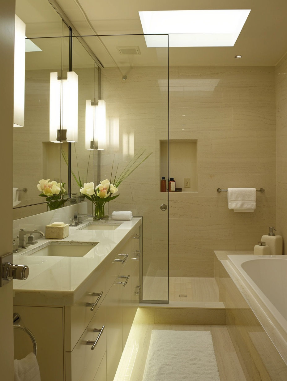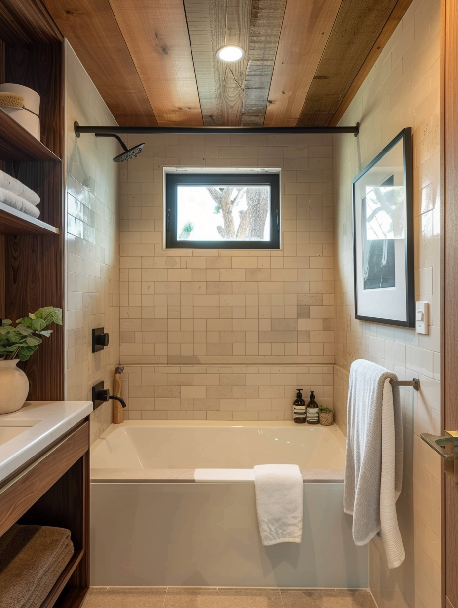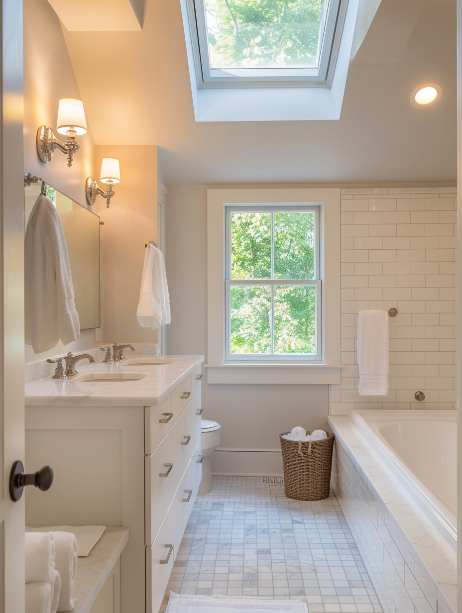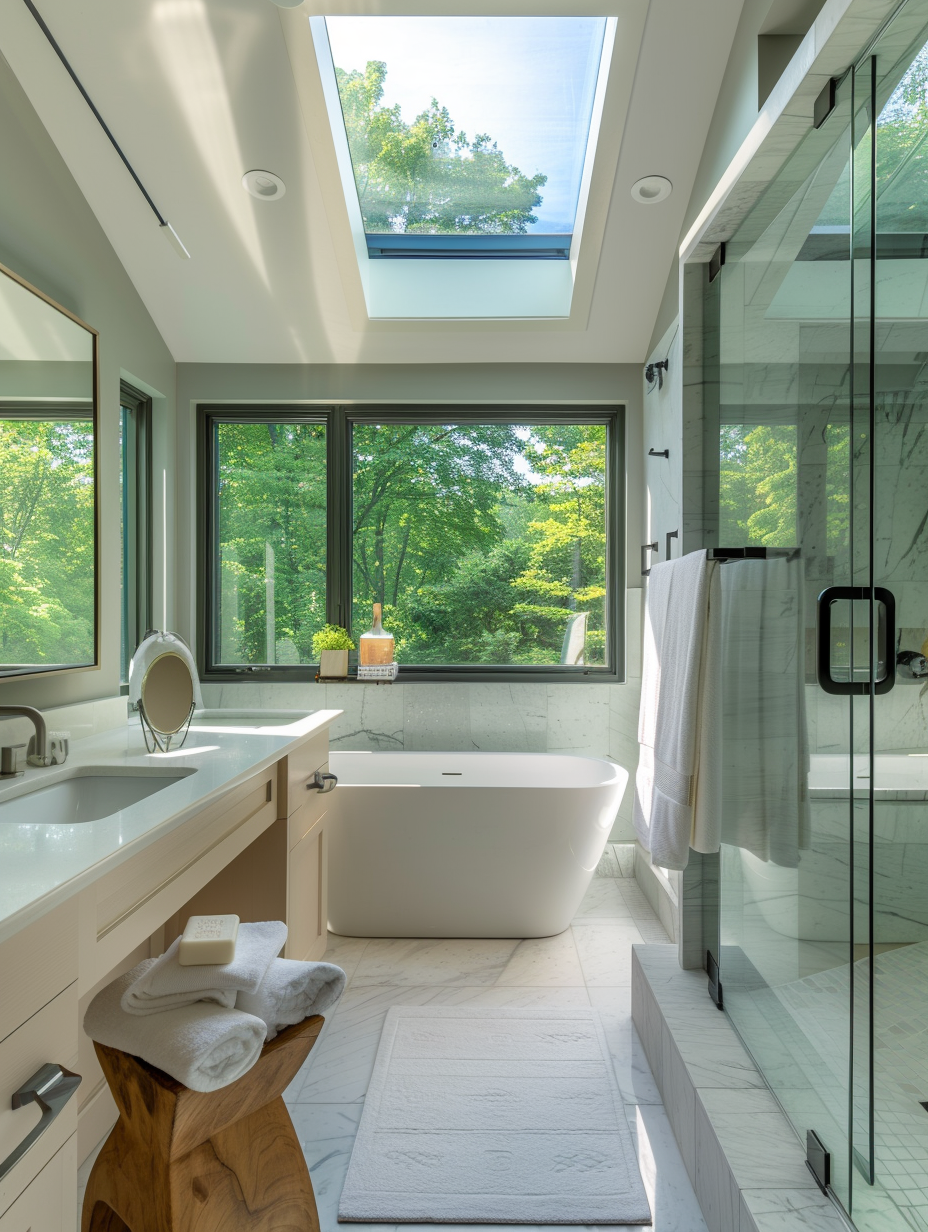 Implementing natural light can dramatically change a cramped bathroom interior. Put up bigger windows, skylights, or light tubes to let the sunlight come in and make the bathroom look bigger and airier. Apply sheer curtains or frosted glass to keep privacy yet allow the light to pass. This not only strengthens the general mood and brightness of the bathroom through the effect of light.