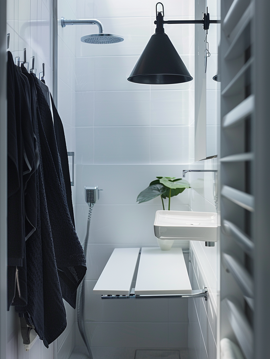 Space-saving ideas make the foldable and wall-mounted fixtures suitable for a bathroom prospective. Use of wall-mounted faucets, fold-down shower seats, and retractable clotheslines can help you to save space. They can be stored only when used and removed when not needed thus making the ambiance clean and neat all the time.