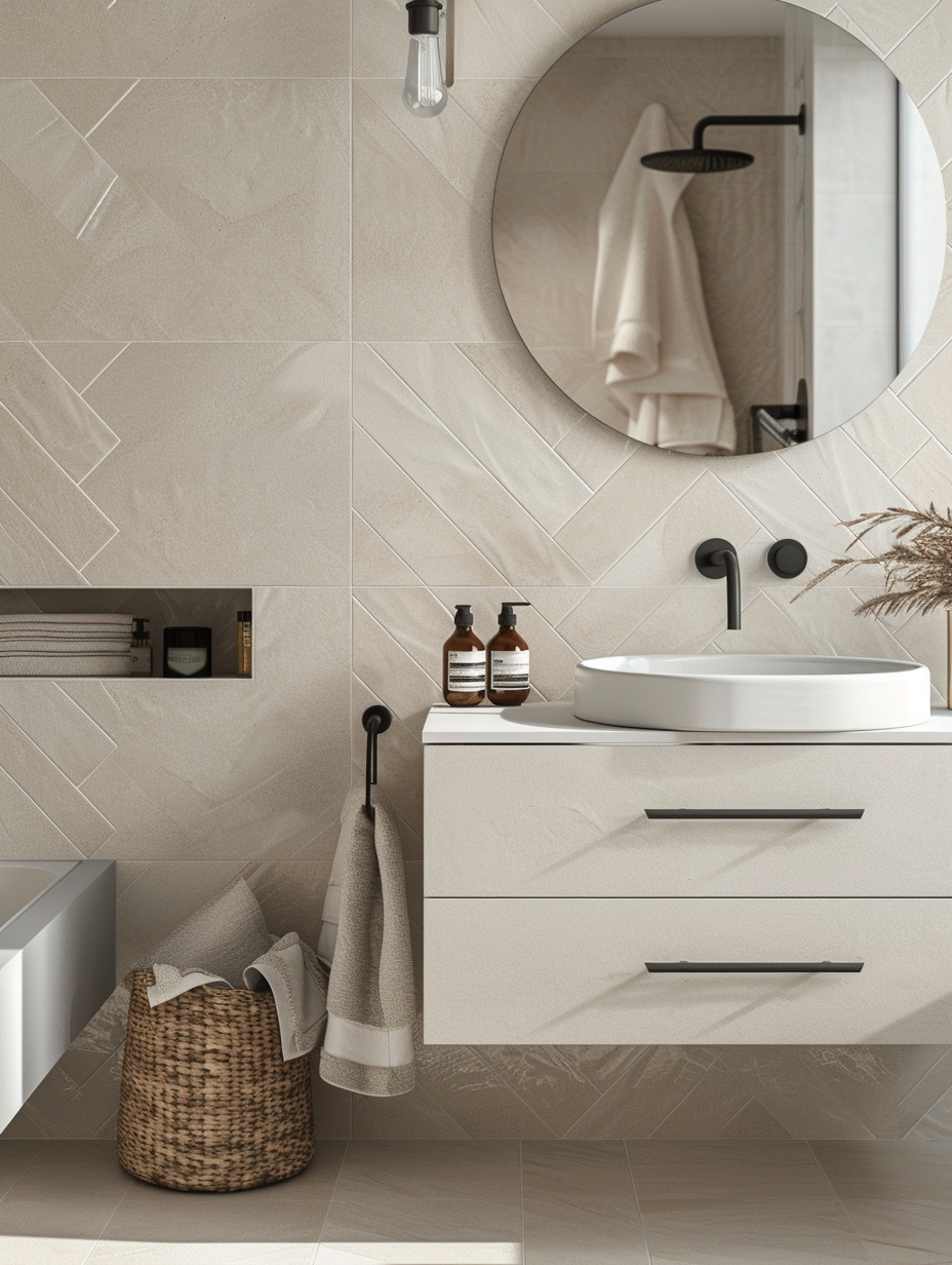 Creative tiling patterns are a smart way to spice up small bathrooms without drowning the space in color. Diverse and challenging tile style like s herringbone and diagonal help to generate illusions of a more spacious area and therefore make the bathroom look larger. The combined use of various tile sizes and textures would also create depth <