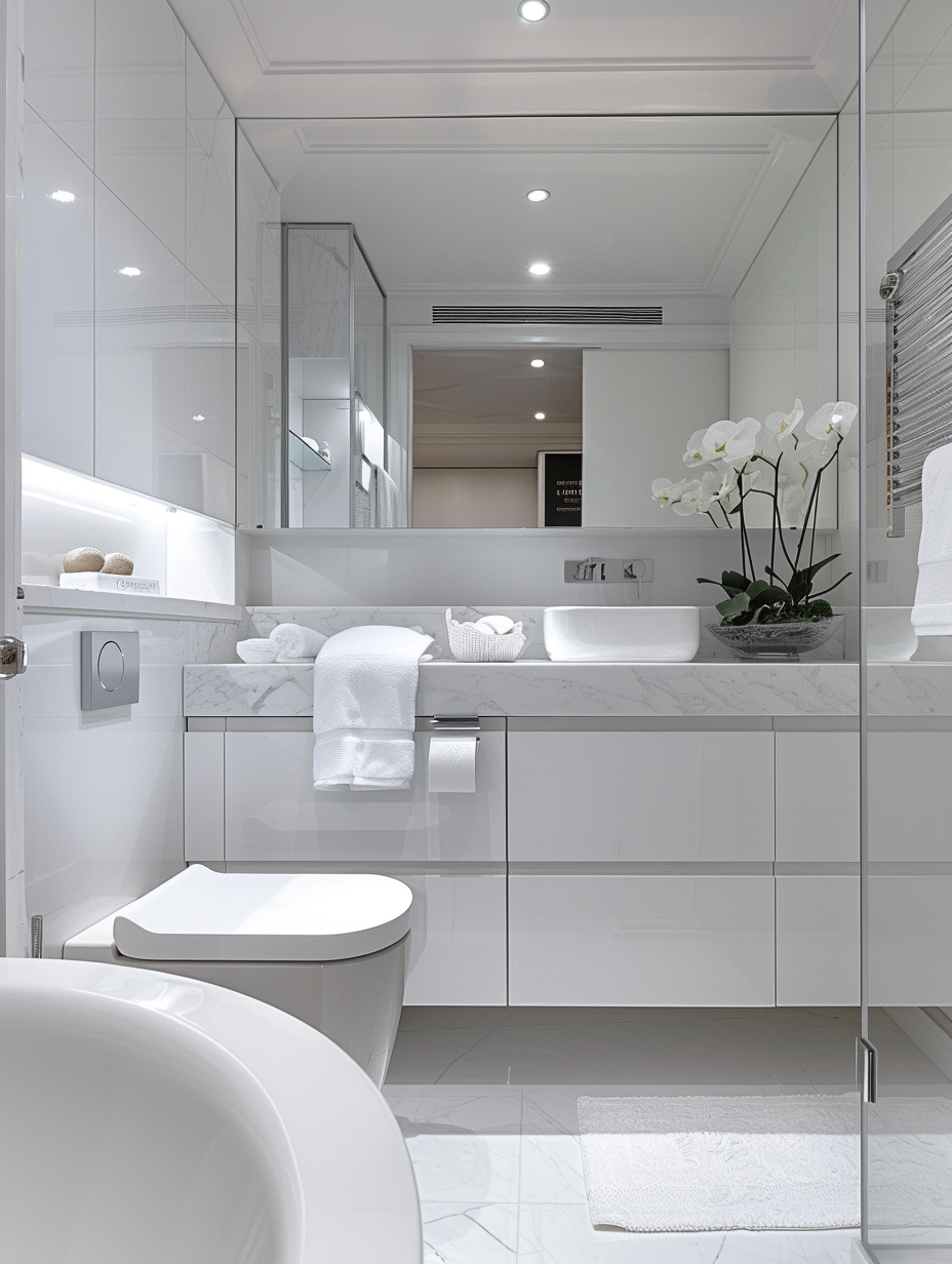 Reflective surfaces can be an option in making a small bathroom appear larger and brighter. By using glossy tiles, glass, and metallic finishes, light is reflected, and thus, the idea of spaciousness is created. Another way, mirrored walls or backsplashes may encourage it. Properly placing the items mentioned above can greatly enhance the feeling of space in the bathroom.
