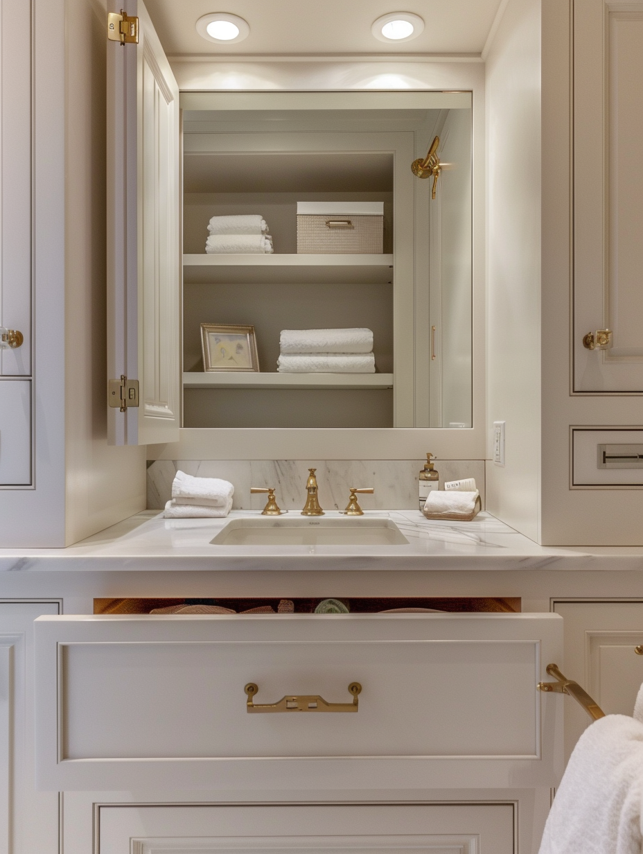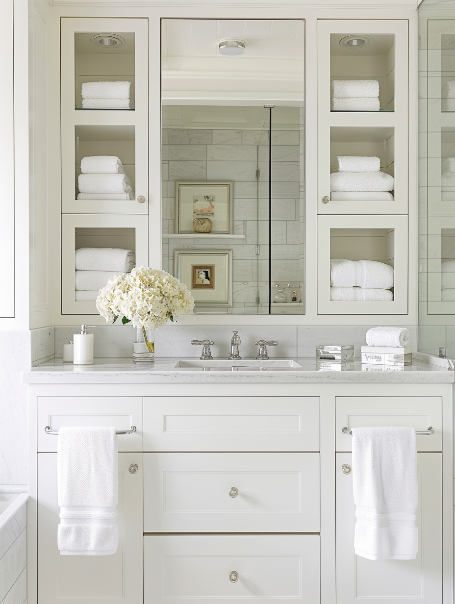 In small bathroom organization, multi-functional furniture is a must-have. Get items that do double duty, for example, a vanity with an attached laundry hamper or a bench with a secret storage place. These are the ones that could save space significantly and also provide indispensable functions, namely upgraded comfort and style of the bathroom.