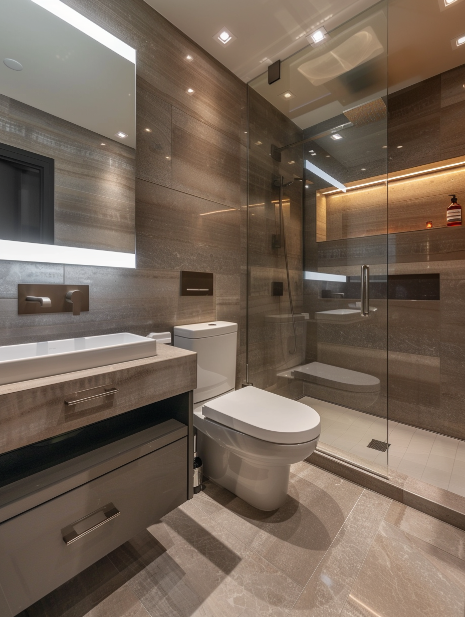 Simplicity and discreet luxury serve as the basis for the style under discussion. Marble, glass, and brushed metal are popular materials in a neutral color palette. Choose minimalistic fixtures and articles that project a poised image. This layout builds a fantastic and ageless bathroom that is also a well-kept secret.