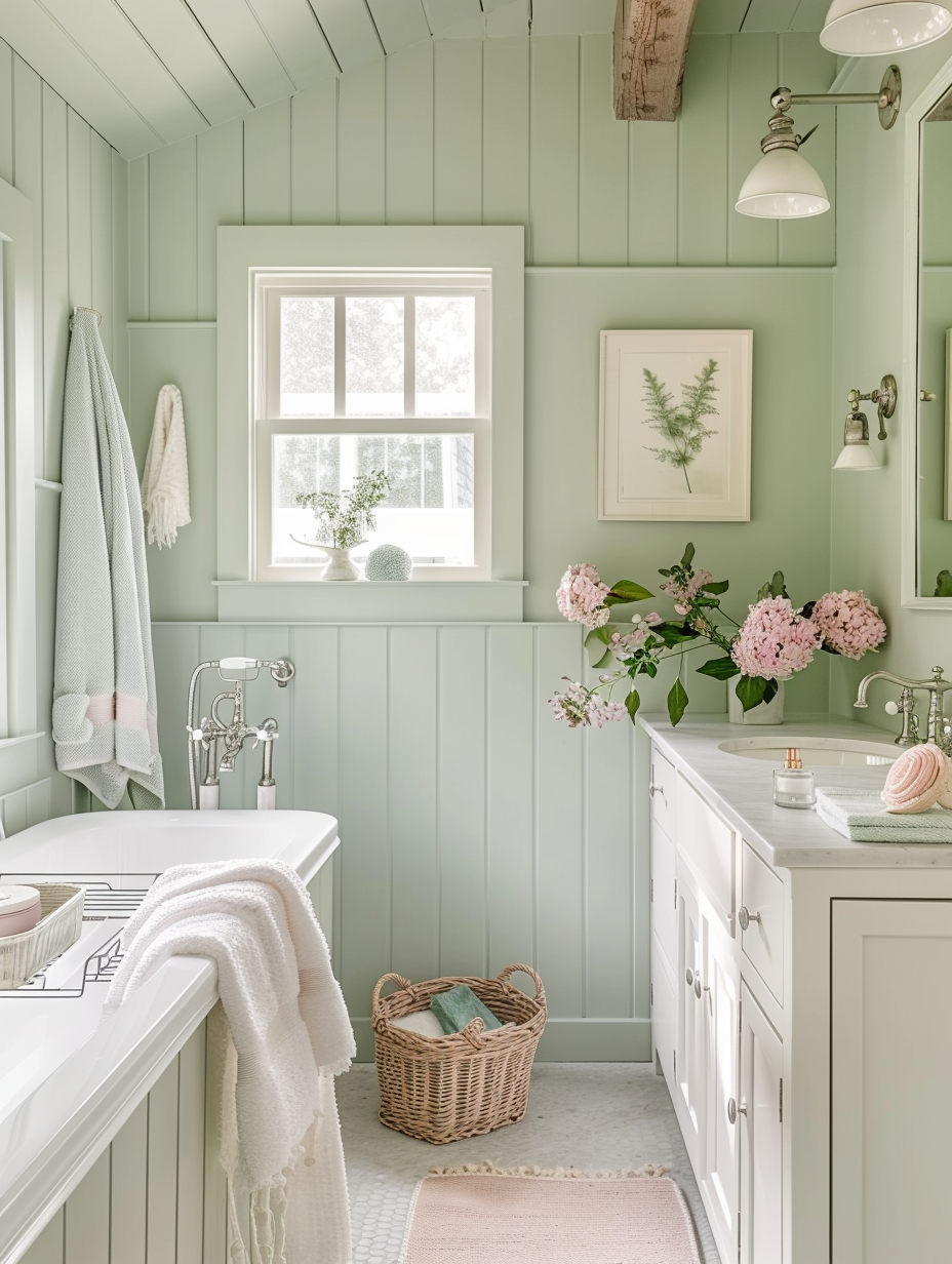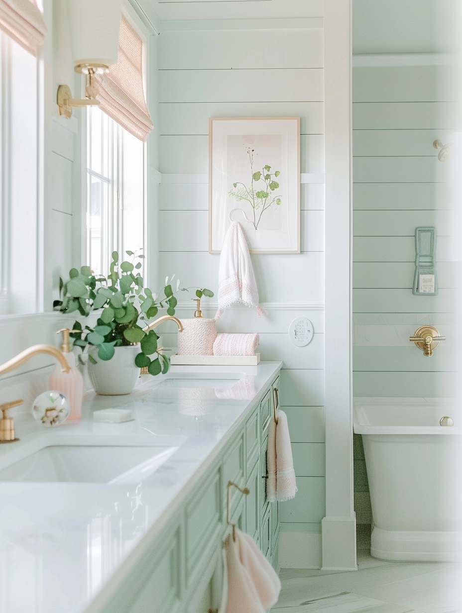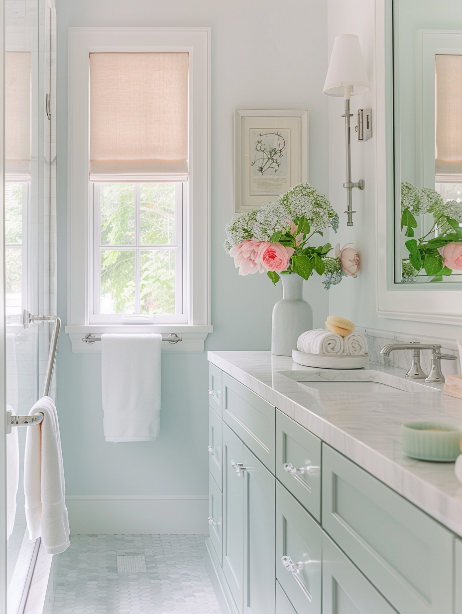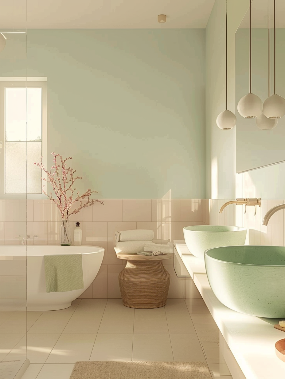 Pale and soft chalk tones can be an interesting but not too heavy color for your bathroom. Shades similar to the color of mint, rose, and spring blue having a therapeutic and characteristic effect. Combine them with white and light gray fixtures, and accessories for a great look that is elegant and breezy. The following pattern is just right for an elegant and small-colored addition to your design without the loss of tranquility in the room.