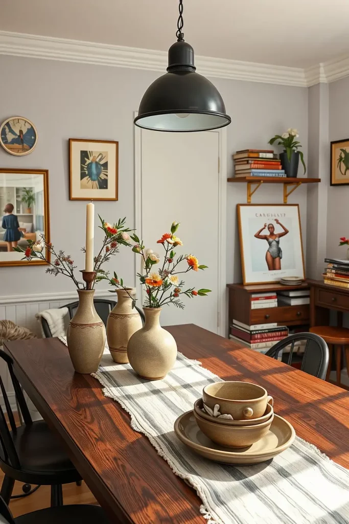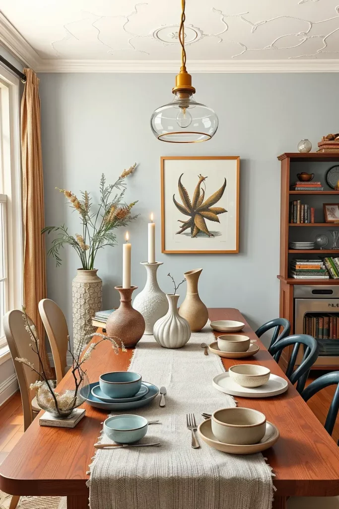 Having handmade decorative items in your dining area helps to give it personality and adds to its overall design. Ceramics, baskets and glassware made by artisans, instead of mass-produced ones, give a space more character and make it unique.