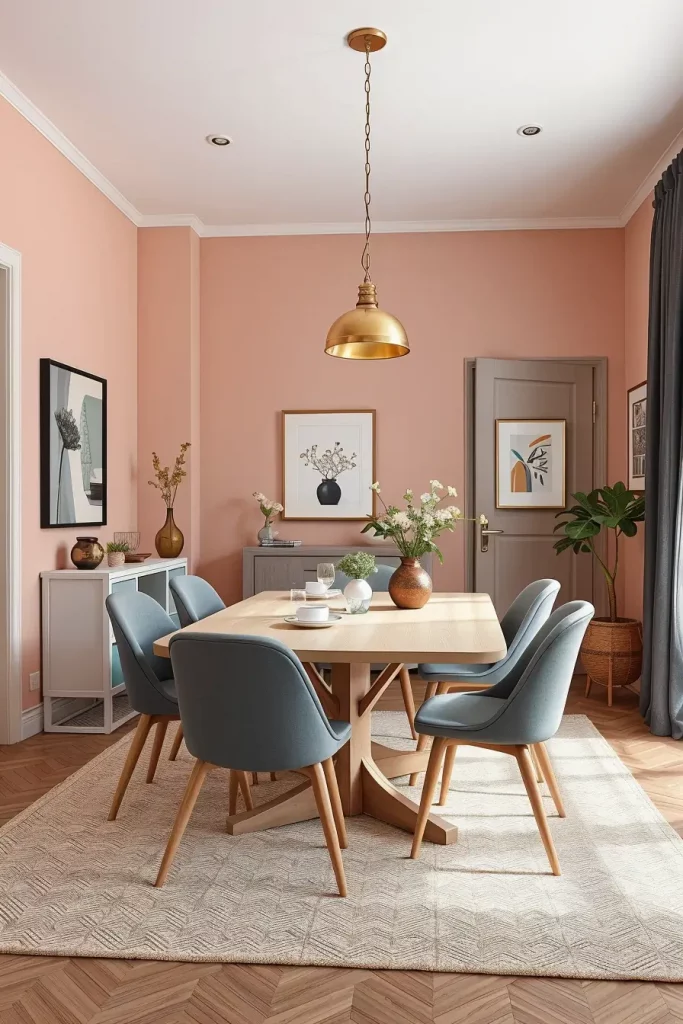 I have found that the colors in a room make the biggest difference, especially in apartments, where a single design style is essential for the whole space to connect. Going for a stylish color palette lets the dining room blend naturally with the adjoining places. Merchandise and accessories in different shades of taupe, grey, blush and green are a great fit. These colors don’t overpower but instead add elegance while maintaining a tranquil vibe—perfect for modern apartment living.