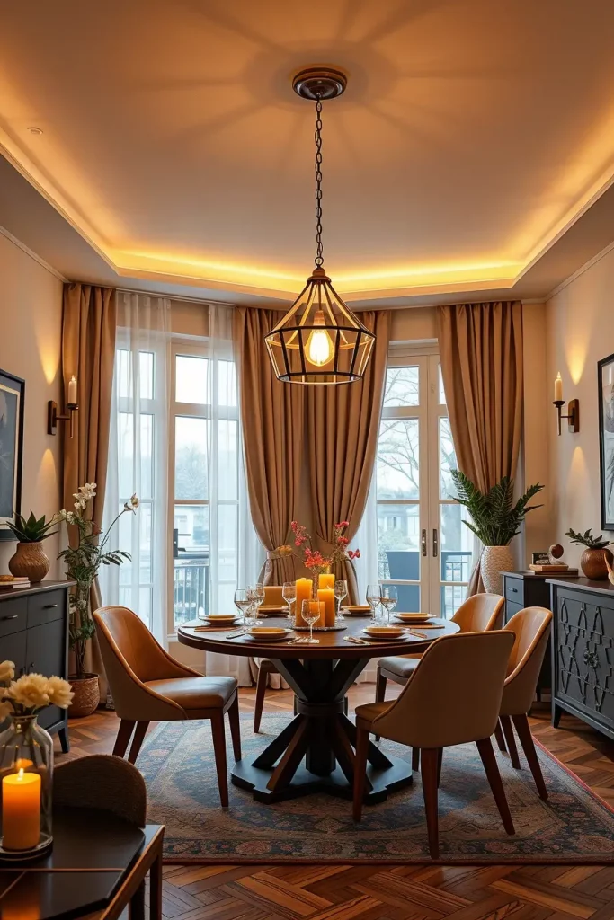 The atmosphere of the dining area depends on lighting more than on function. I enhance an apartment dining area by using different lighting sources. Overhead fixtures, accent lights and ambient sources are used to give your space more layers and a particular mood. It’s especially in the evening that this way of decorating can make a room feel different.