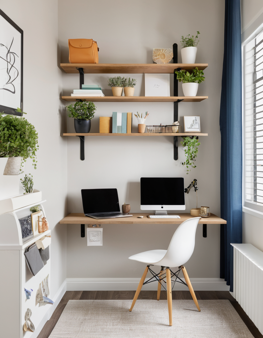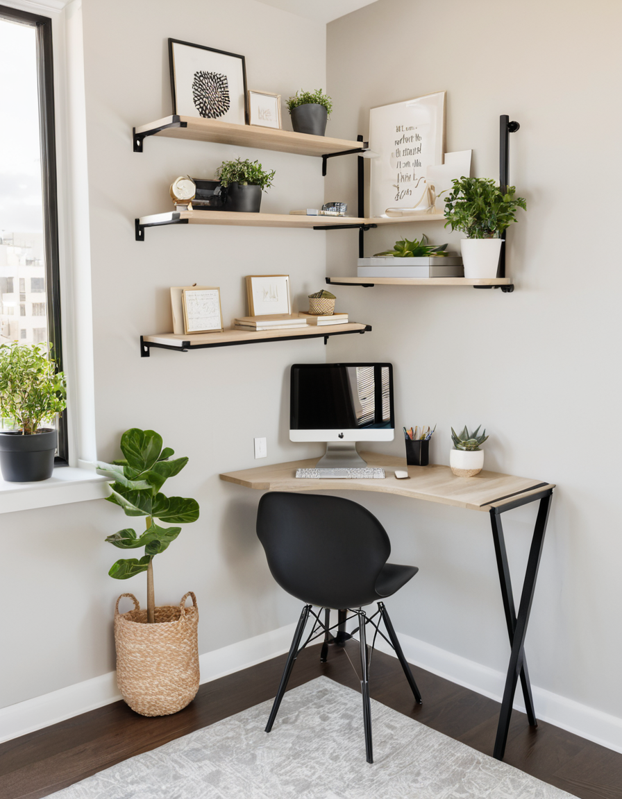 Organizing a useful home office in a small apartment necessitates making space-efficient decisions and picking out appropriate furniture. A good starting point is to choose a small desk according to the area, whether it’s a corner desk, a fold-out wall desk, or a throw-away desk. A great choice for a small and comfortable chair, as well as the use of the vertical long spans for storing stuff like wall shelves or peg boards, is an example of being well-organized. Get a quality light source such as a desk lamp or wall-mounted light to ensure a proper work environment. Stick to personalization with the help of small decorative items like framed photos, plants, or motivational quotes to get the mood across.